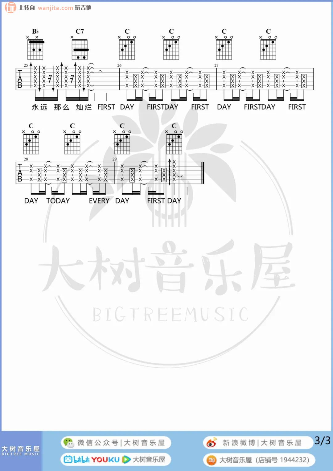 当前位置:琴谱网>吉他弹唱>第一天