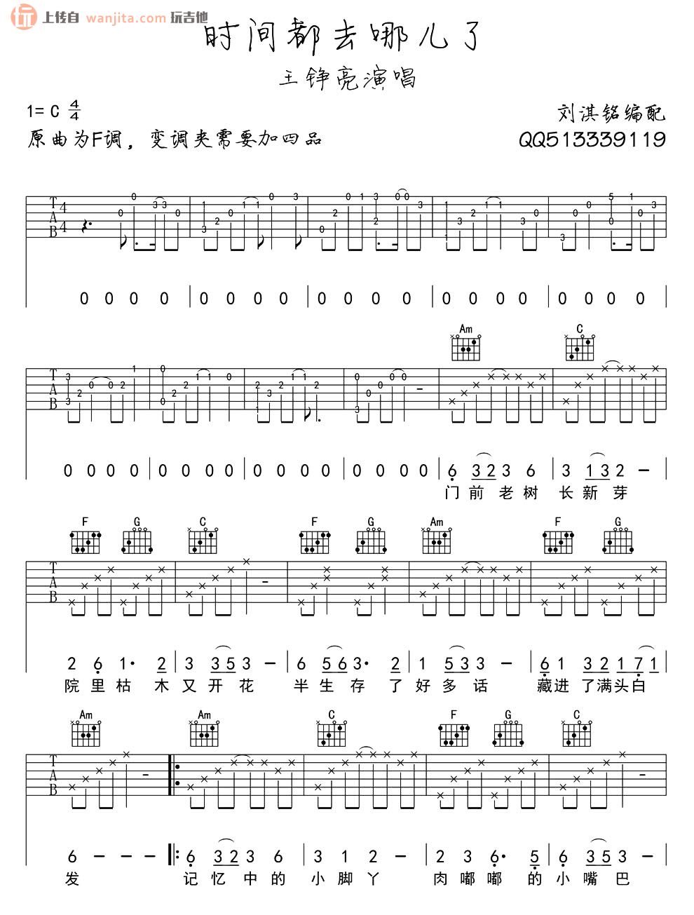 时间都去哪儿了吉他谱 - 王铮亮 - C调吉他弹唱谱 - 原版