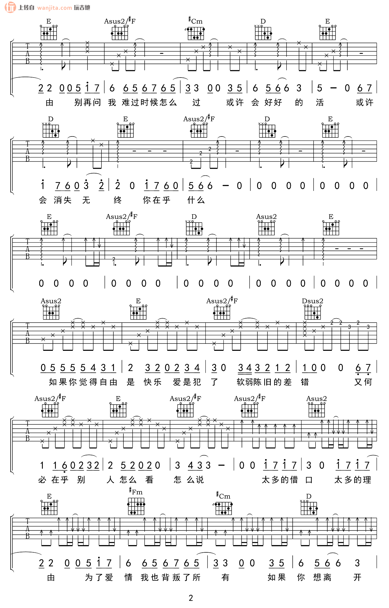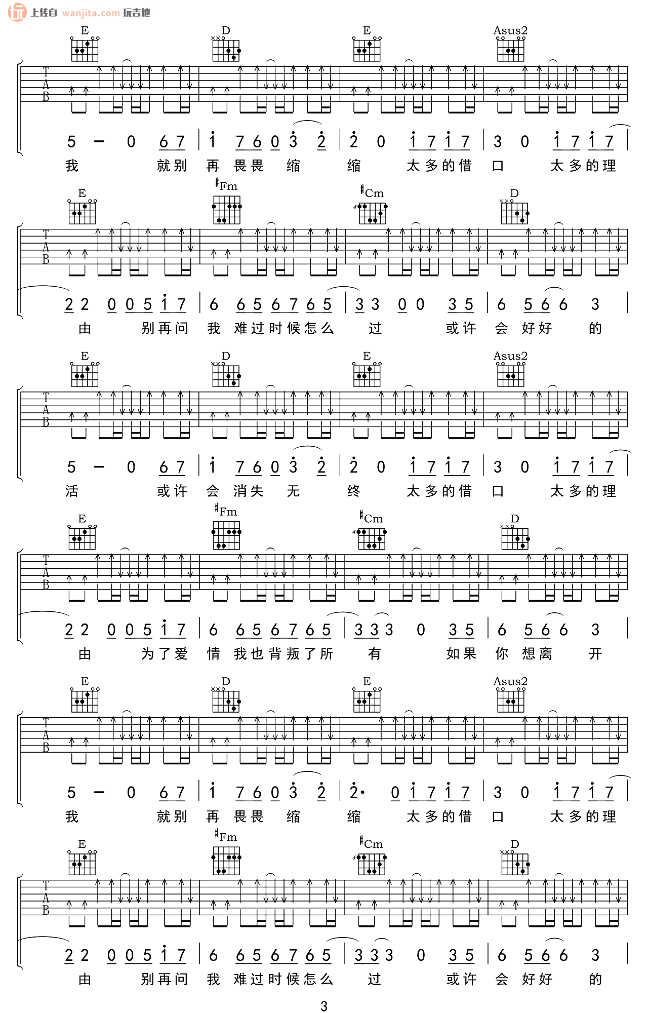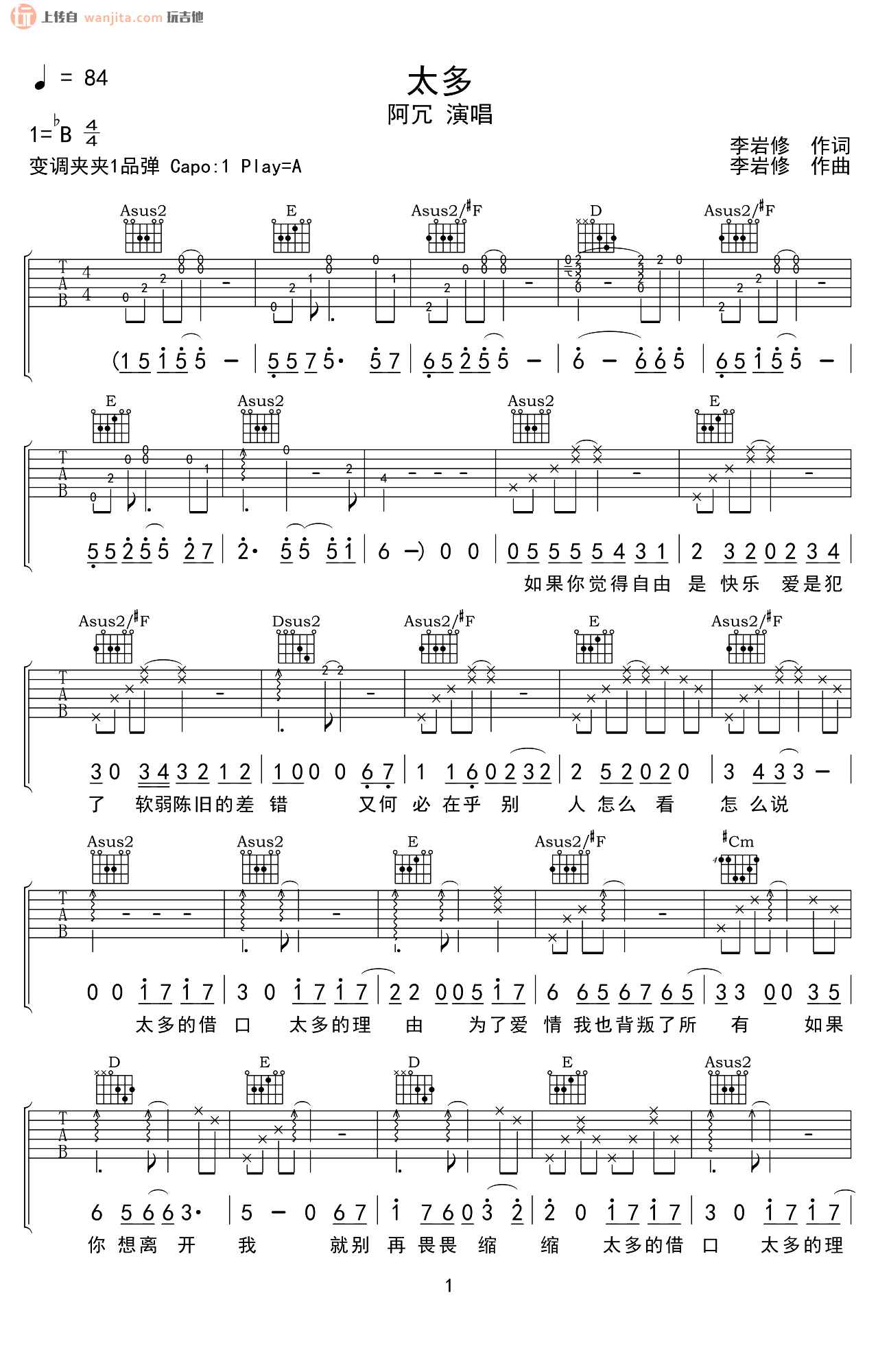 当前位置:琴谱网>吉他弹唱>太多
