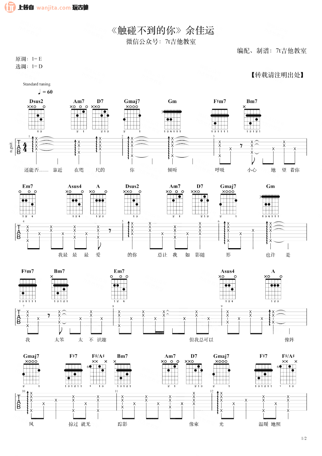 曲谱介绍: 《触碰不到的你》吉他谱,原调E调,使用D调,不使用变调夹。这首歌曲的弹唱难度属于中等,新手不建议学习,适合进阶的老哥们你练习和学习,这首歌曲唱起来也是比较简单的,大家要注意弹唱时的节奏。