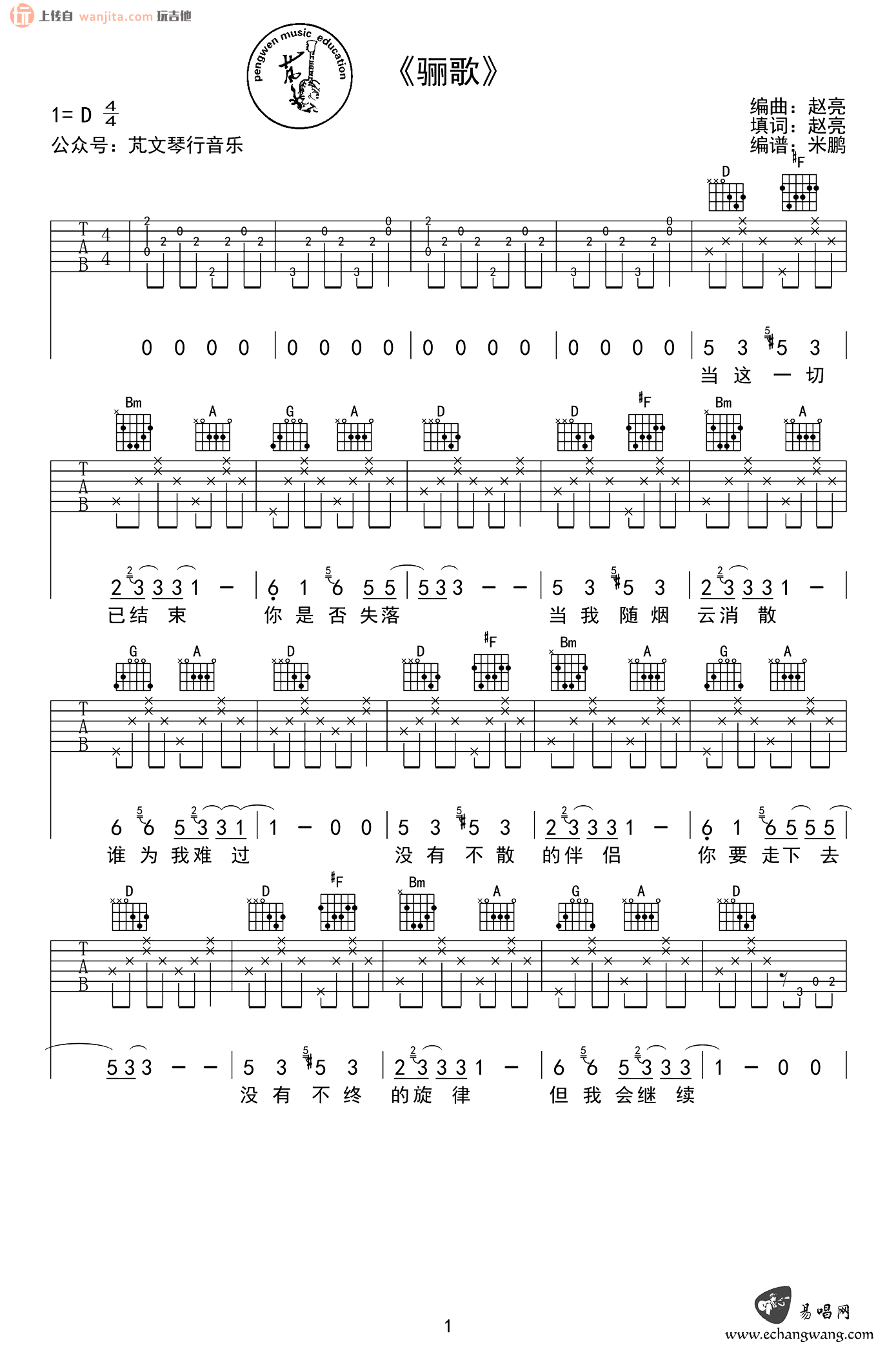 曲谱介绍: 《骊歌》吉他谱,原调D调,不使用变调夹。米鹏编配制谱。前奏虽然说略微偏难,但十分好听,值得学习弹唱丰富的层次感和节奏感带给人不一般的吉他弹唱享受。好听的·1歌曲值得被收藏。