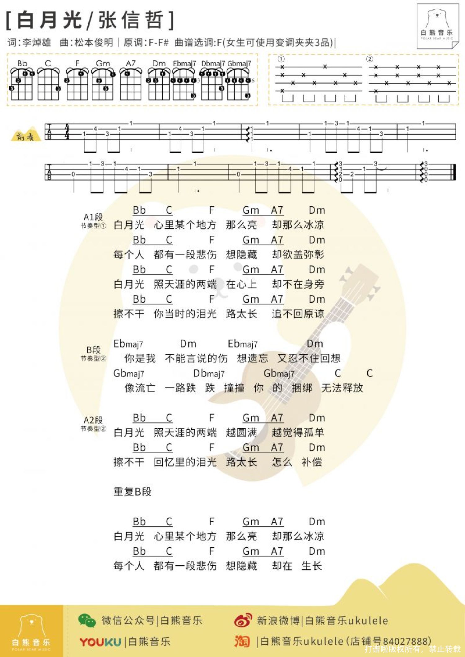 当前位置:琴谱网>尤克里里>白月光