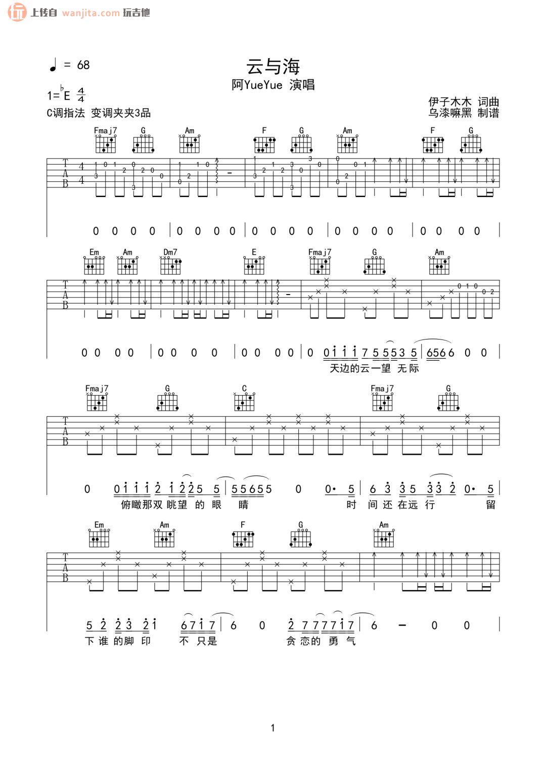 云与海吉他谱 - 阿yueyue - C调吉他弹唱谱 - 原版