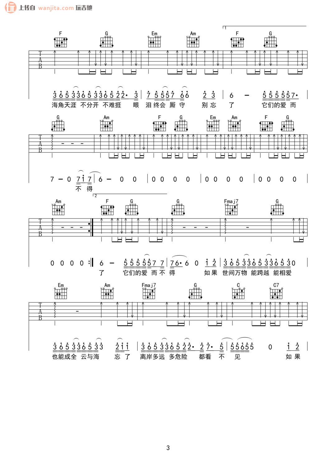 当前位置:琴谱网>吉他弹唱>云与海