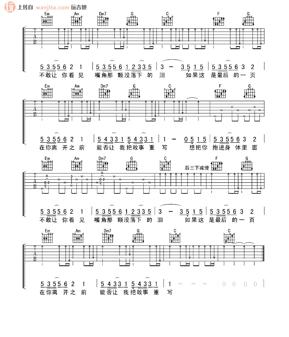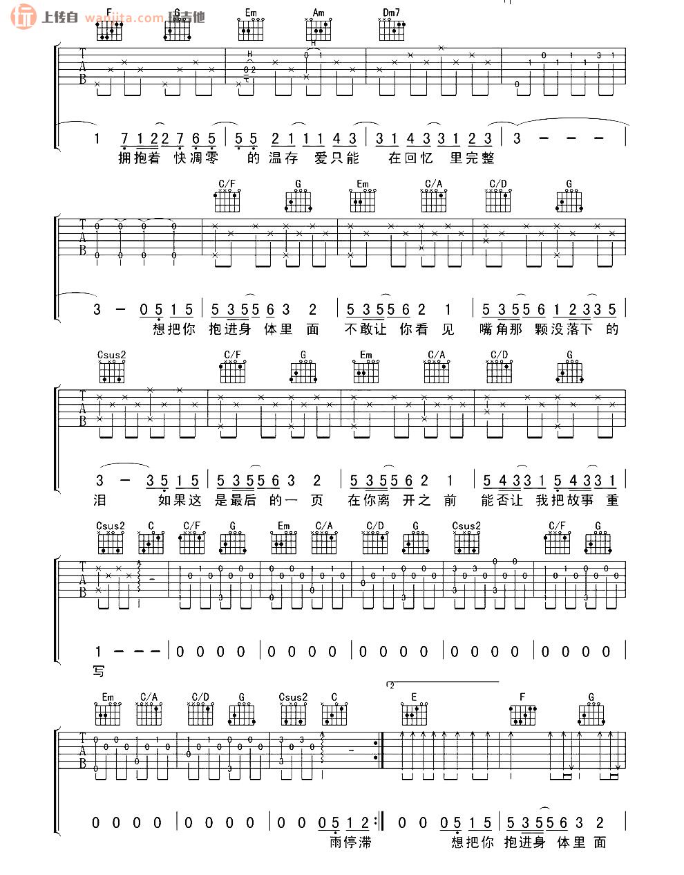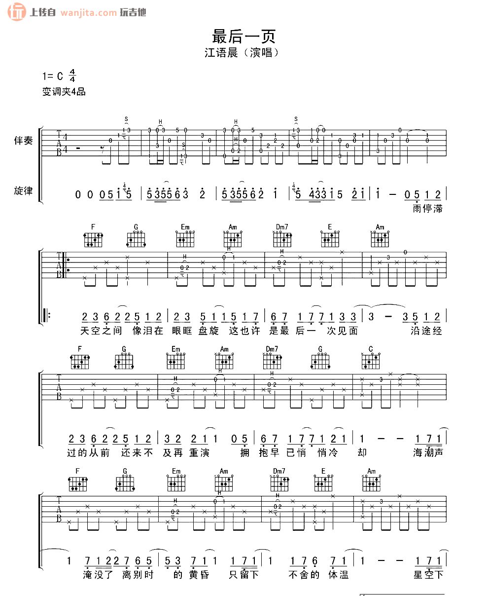 最后一页吉他谱 - 江语晨 - C调吉他弹唱谱 - 原版