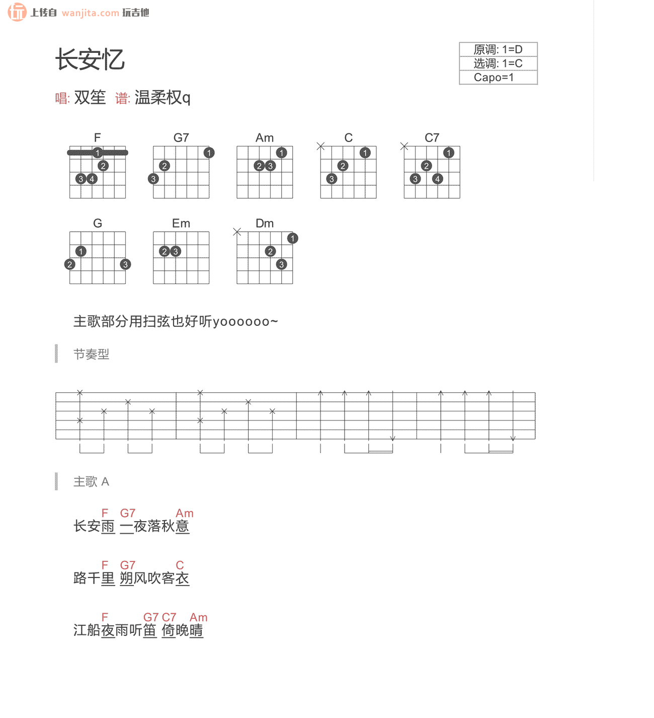 长安忆吉他谱 - 双笙 - C调吉他弹唱谱
