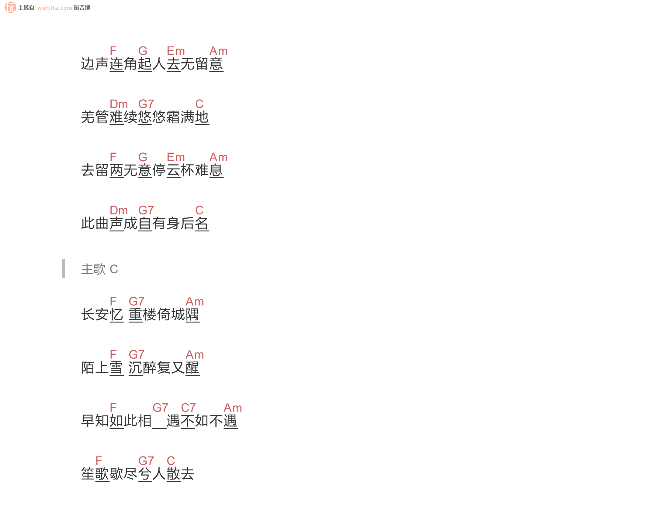 曲谱介绍: 《长安忆》吉他和弦谱,这张吉他简谱比较简单,适合新手练习,歌曲的词很有考究,需要大家多多揣摩,多多感受,喜欢这首歌曲的朋友们记得收藏。