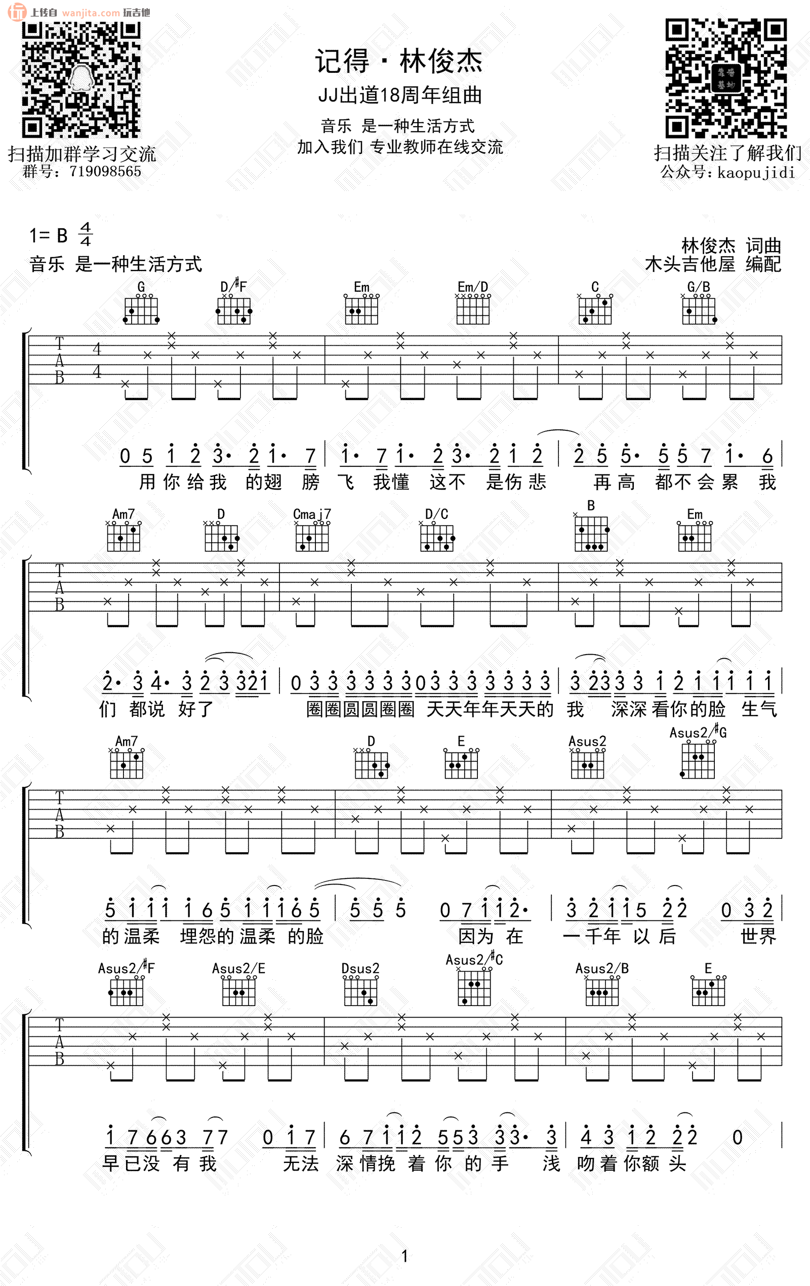 林俊杰出道18周年吉他谱 - 林俊杰串烧金曲 - B调吉他弹唱谱