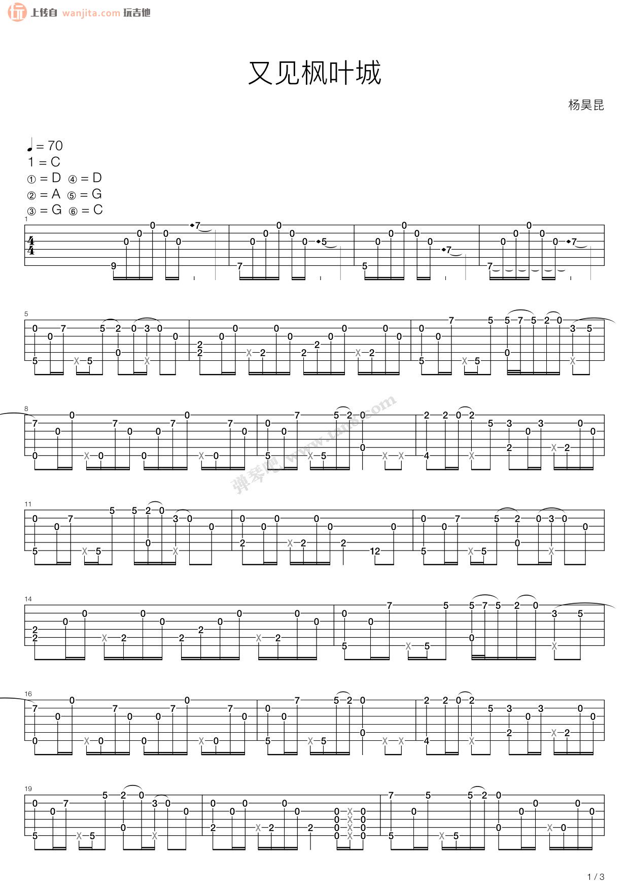 又见枫叶城吉他谱 - 杨昊昆 - 吉他独奏谱