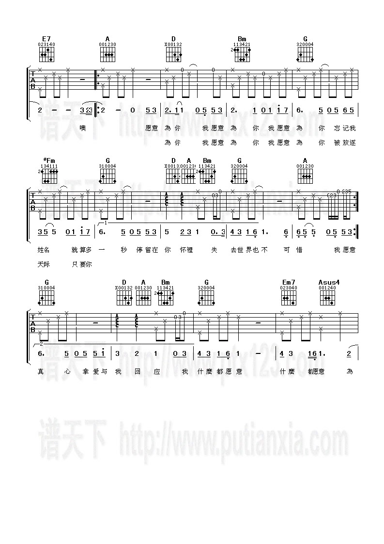 当前位置:琴谱网>吉他弹唱>我愿意