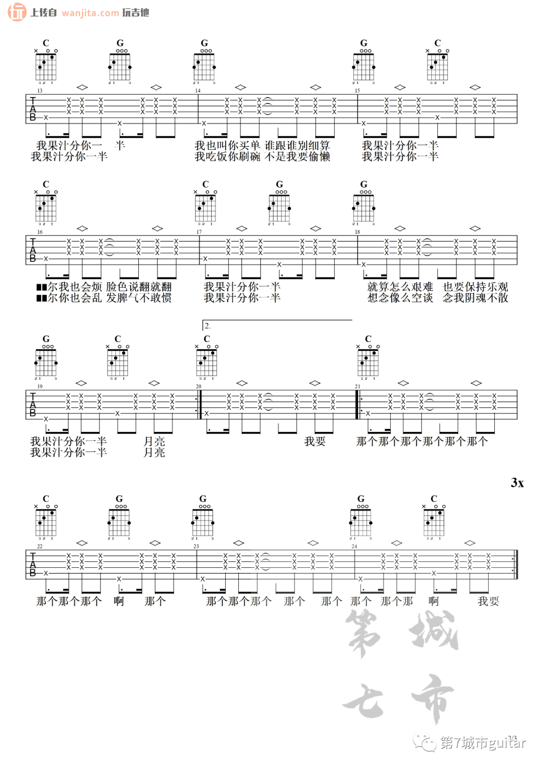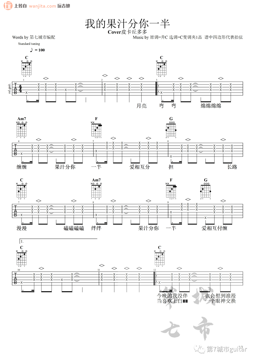 我的果汁分你一半吉他谱 - 皮卡丘多多 - C调吉他弹唱谱 - 原版