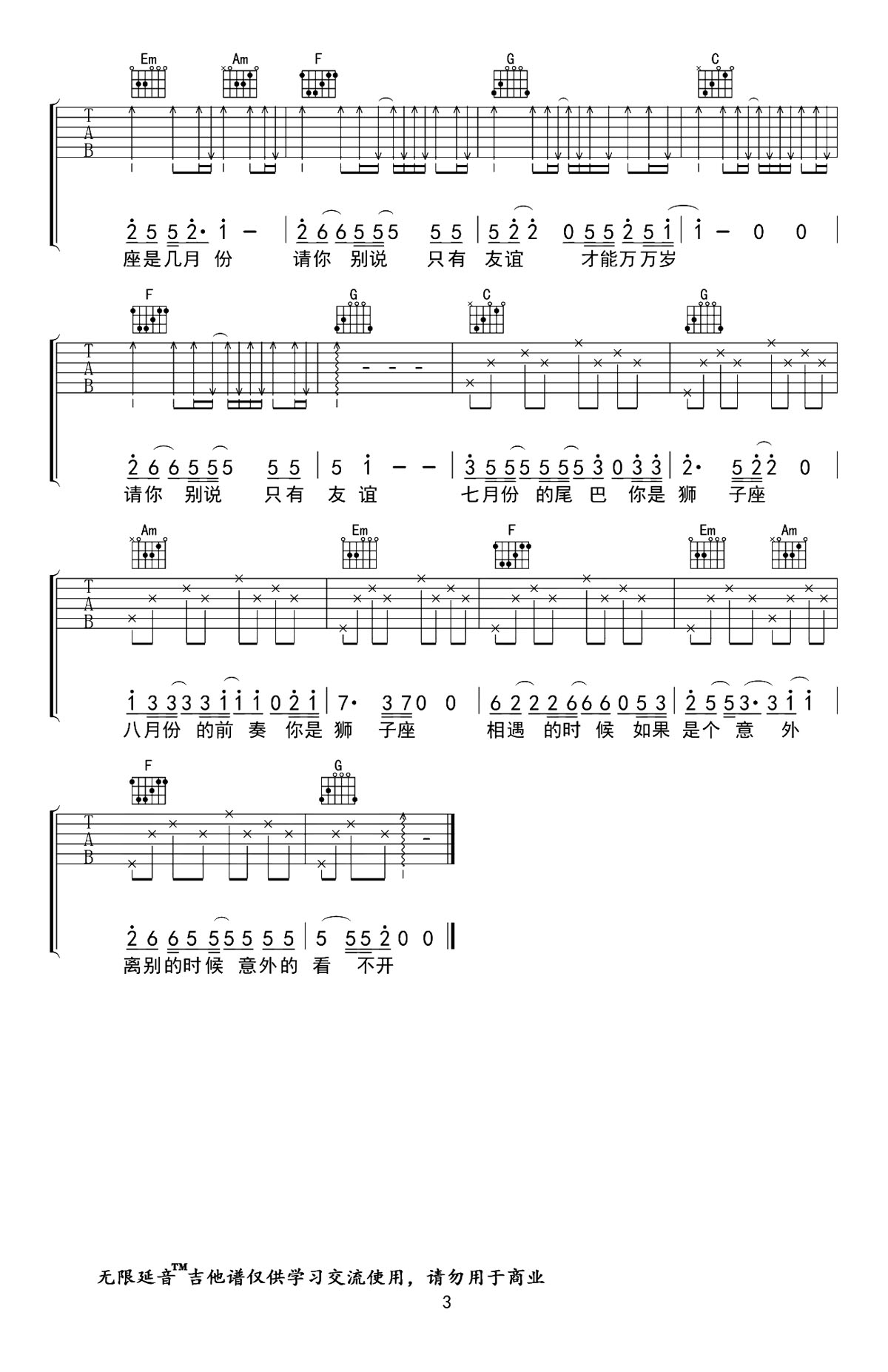 当前位置:琴谱网>吉他弹唱>狮子座