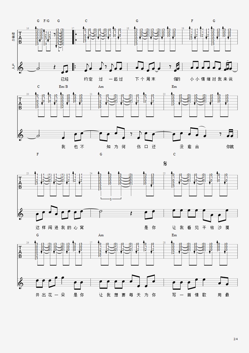 吉他弹唱C调来源:良好市民235 浏览2024-01-24 15:32发布图谱共4页