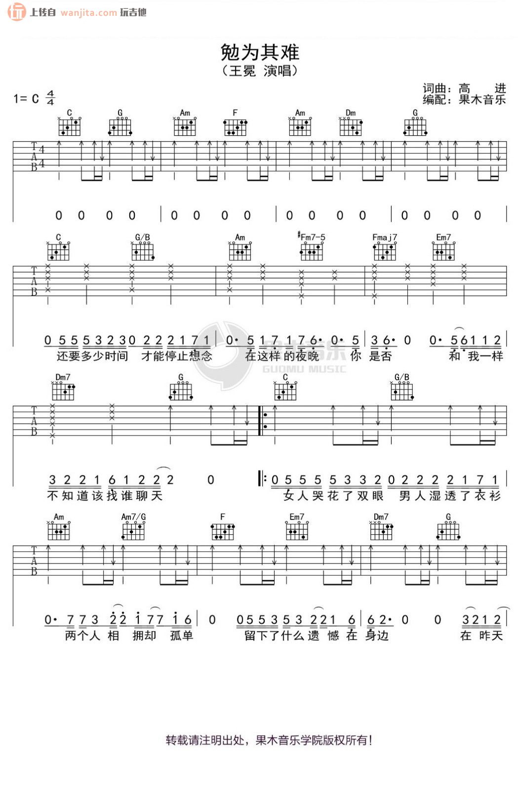 勉为其难吉他谱 - 王冕 - C调吉他弹唱谱 - 原版
