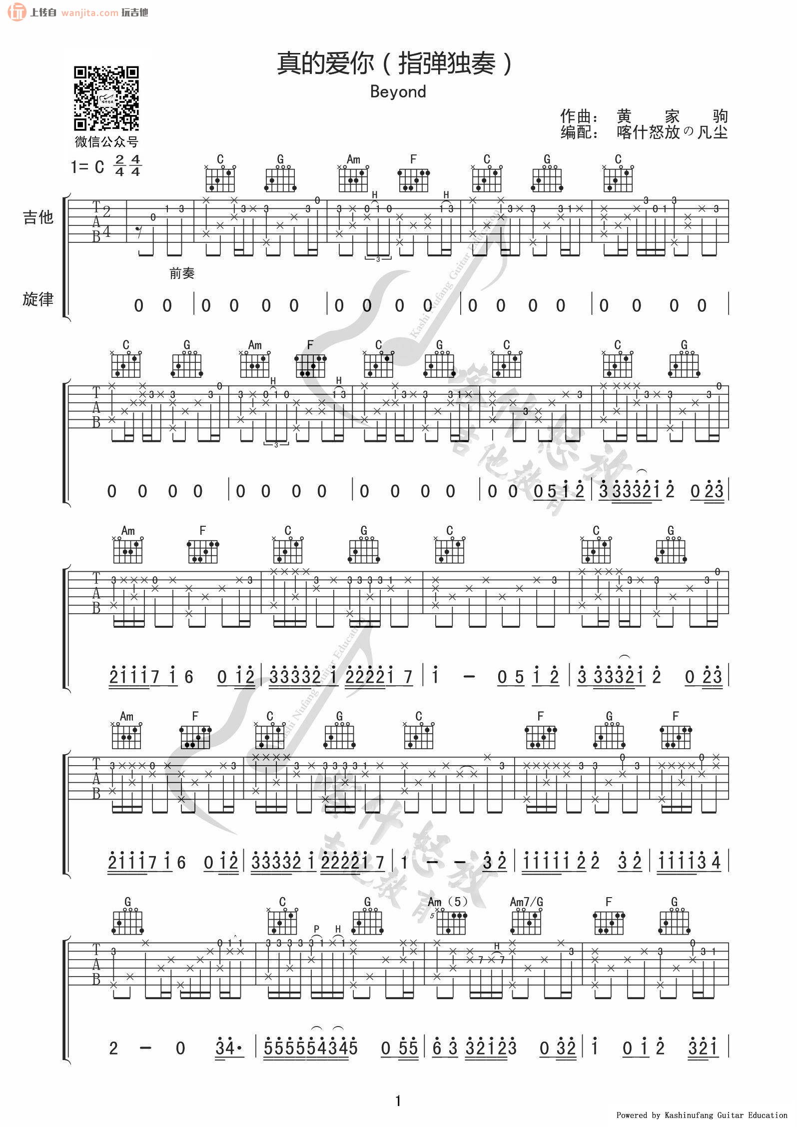 曲谱介绍: Beyond《真的爱你》吉他独奏谱,采用C调指法编配,共有2张高清图谱,免翻页排版设计。