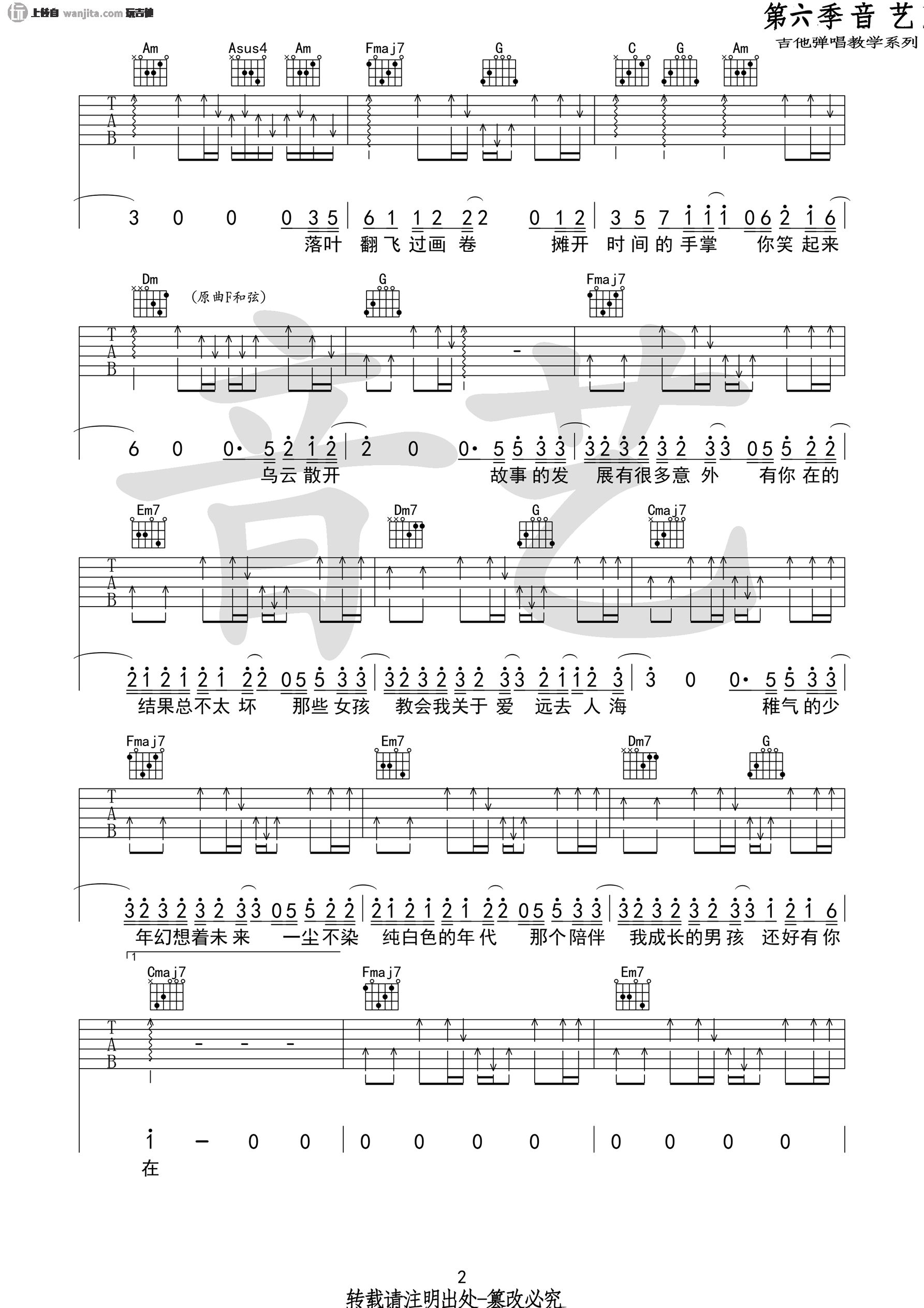 曲谱介绍: 《那个男孩》吉他谱选用C调指法编配,由吉他专家分享,这个版本的全扫弦弹唱,中间有一些快慢的切换,需要大家把控一些节奏的处理。