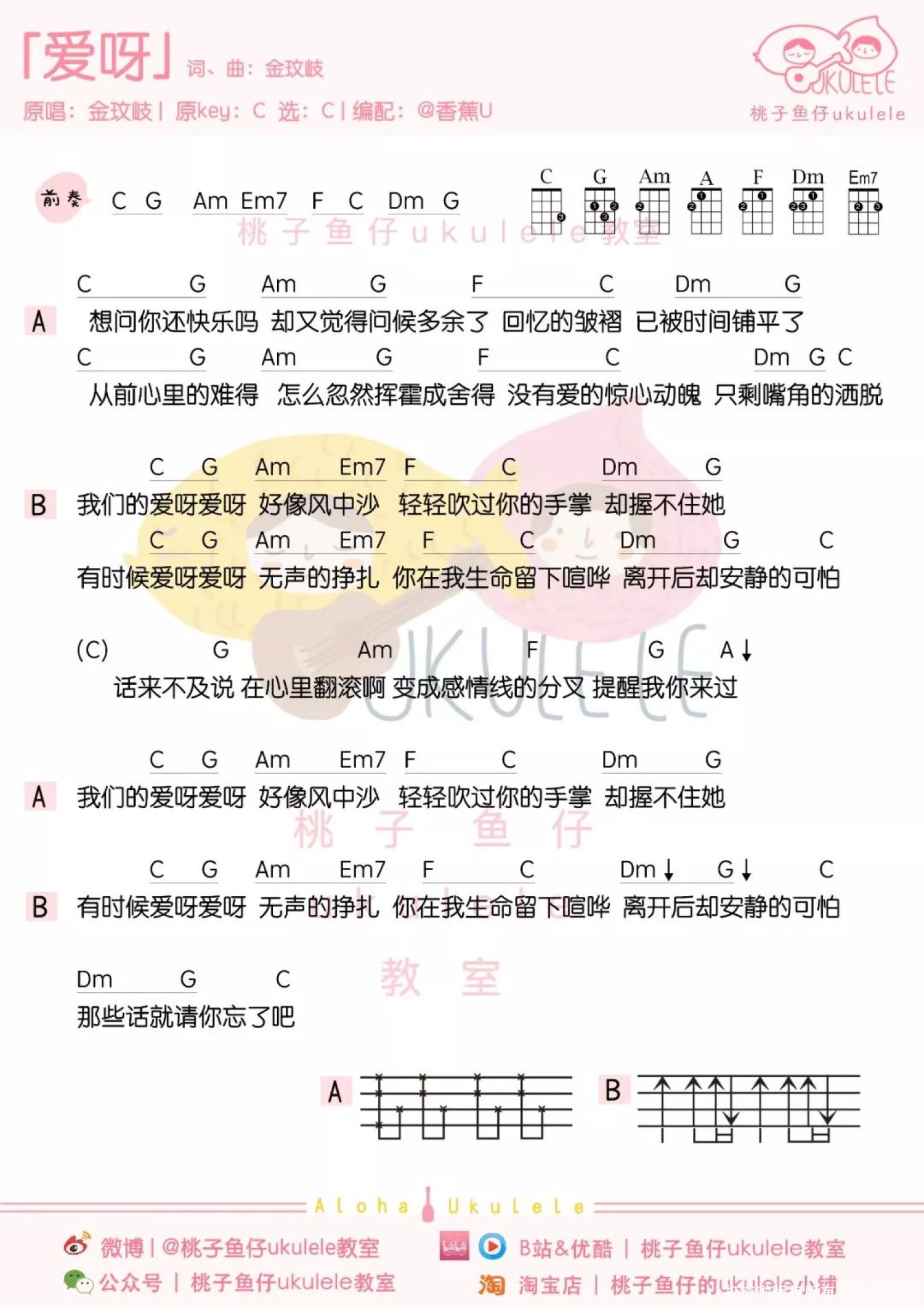 爱呀尤克里里谱 - 金玟岐