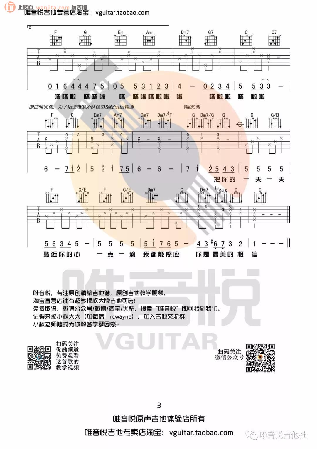 曲谱介绍: 《心愿便利贴》吉他谱,选用C调执法编配,包含了完整前奏,曲谱的节奏还是编配丰富,但是整体难度不算大,如果不会大横按,可以用大拇指反扣六弦来完成弹唱。 《心愿便利贴》吉他弹唱视频