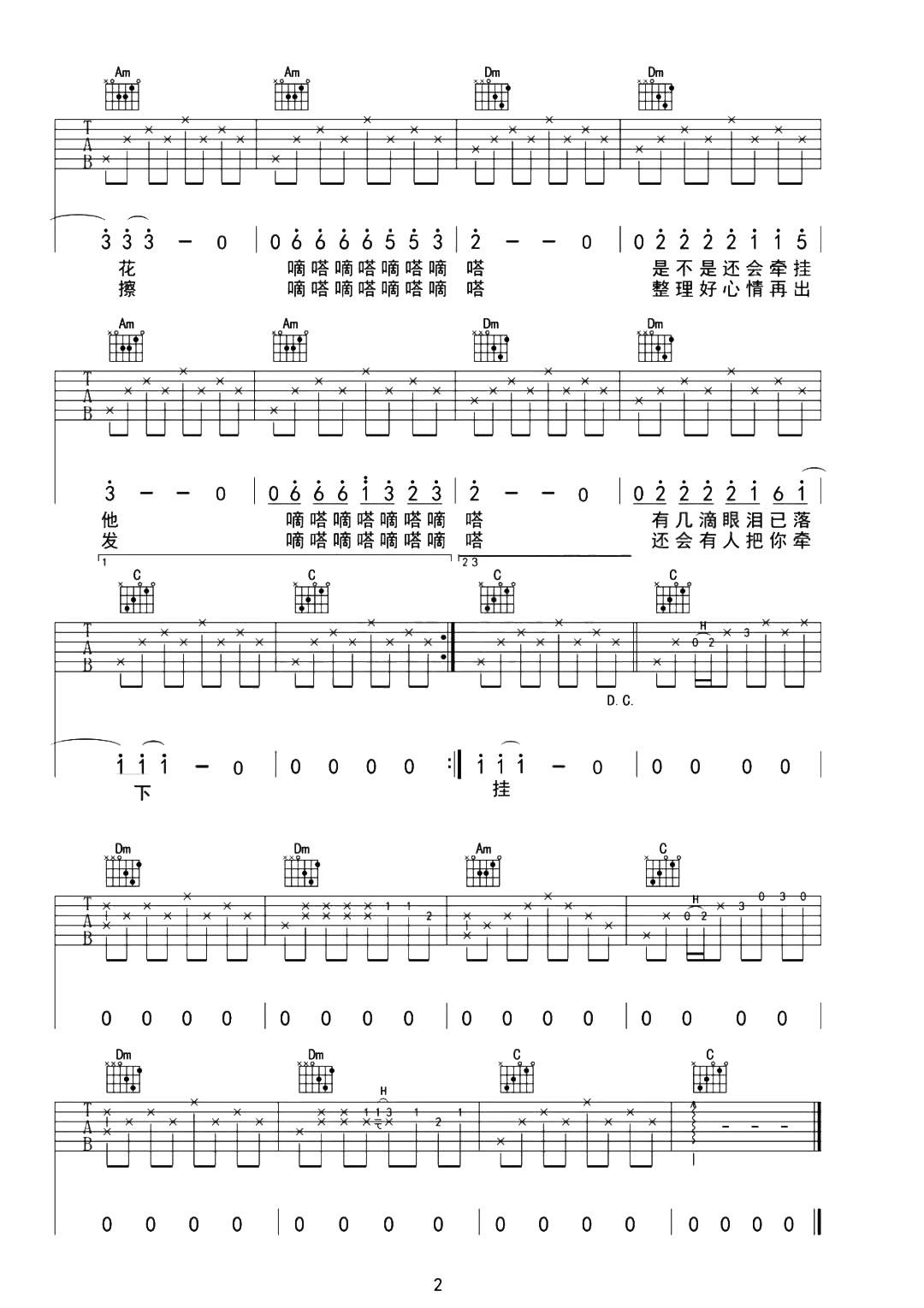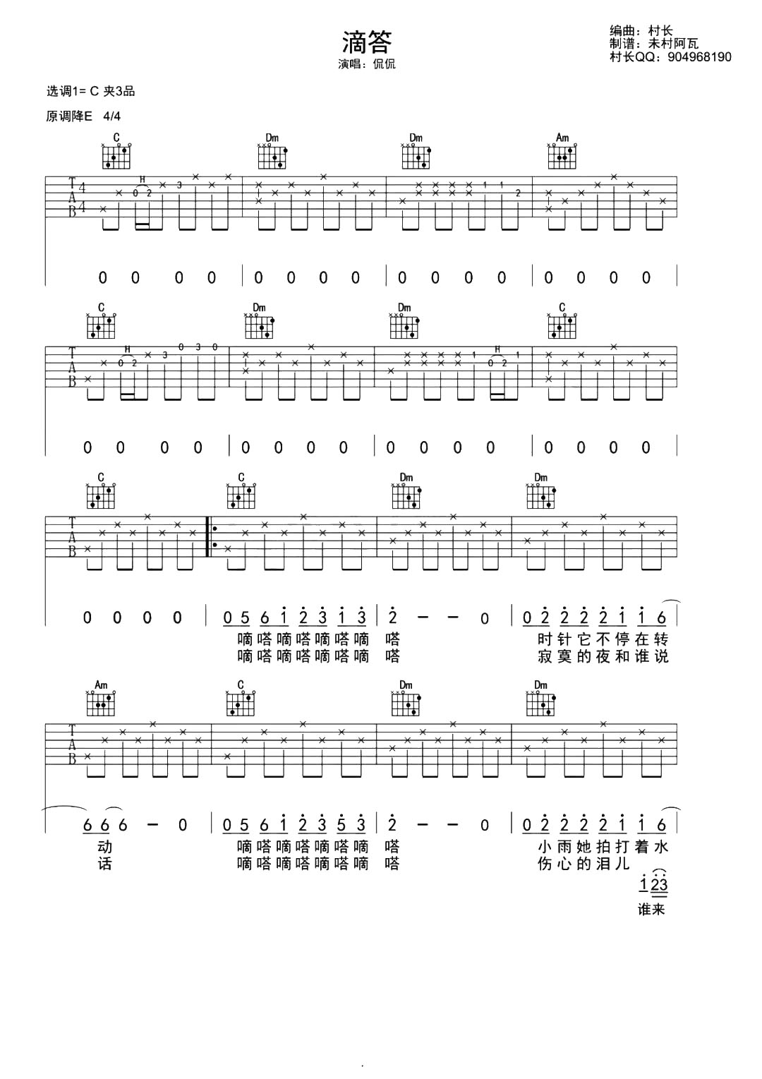 曲谱介绍: 侃侃《滴答》吉他弹唱谱,采用C调指法编配原版,共有2张高清图谱,免翻页排版设计。