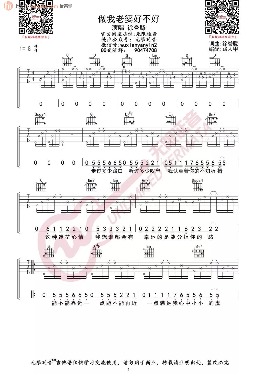 做我老婆好不好吉他谱 - 徐誉滕 - G调吉他弹唱谱 - 原版