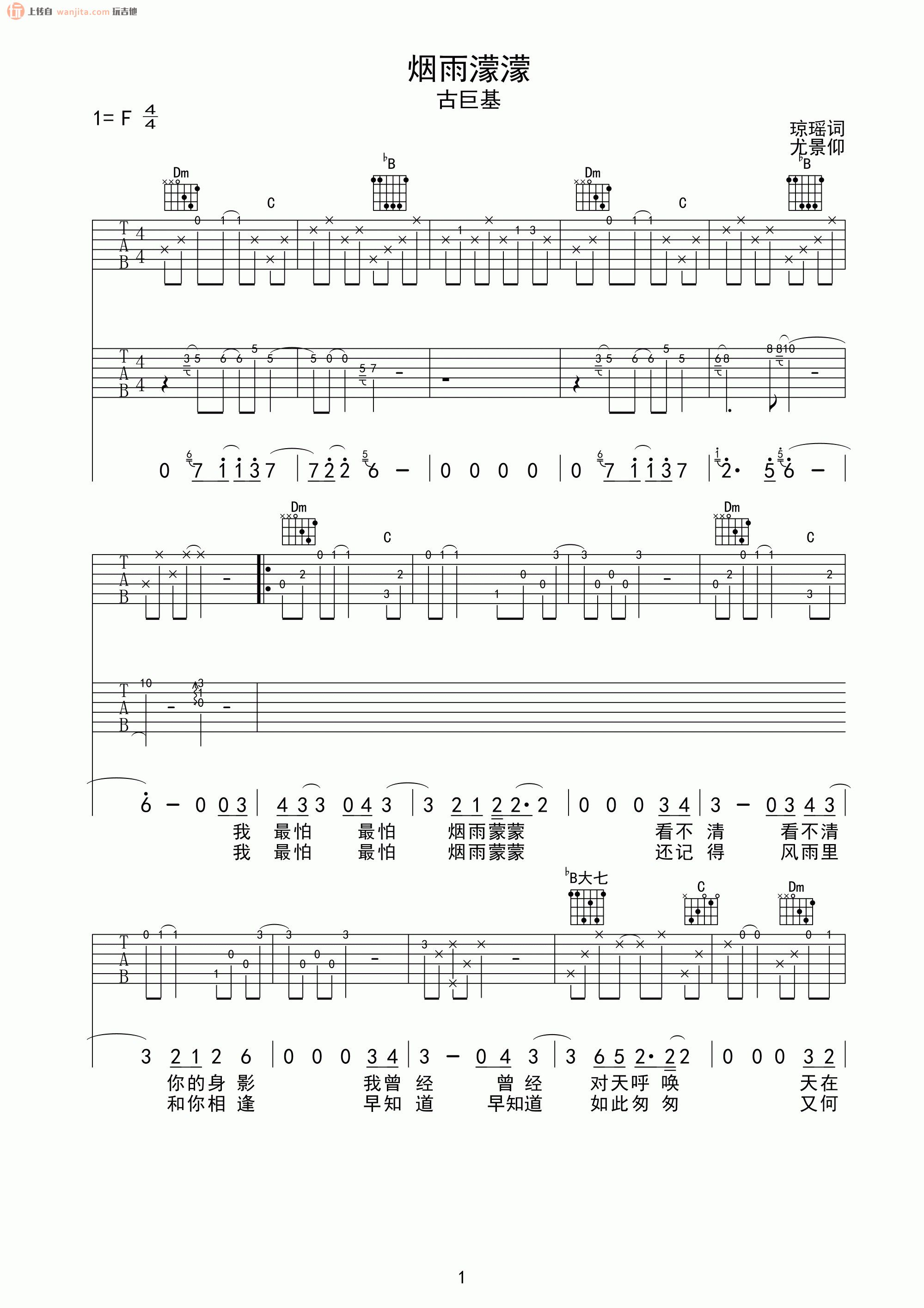 当前位置:琴谱网>吉他弹唱>烟雨濛濛