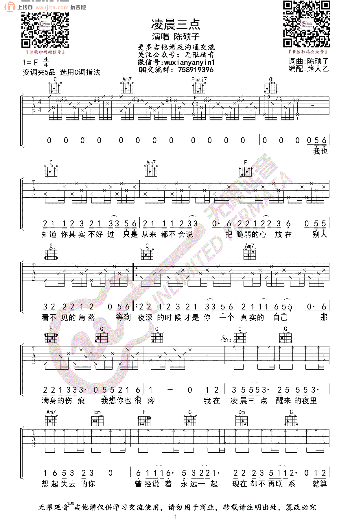 凌晨三点吉他谱 - 陈硕子 - C调吉他弹唱谱 - 原版