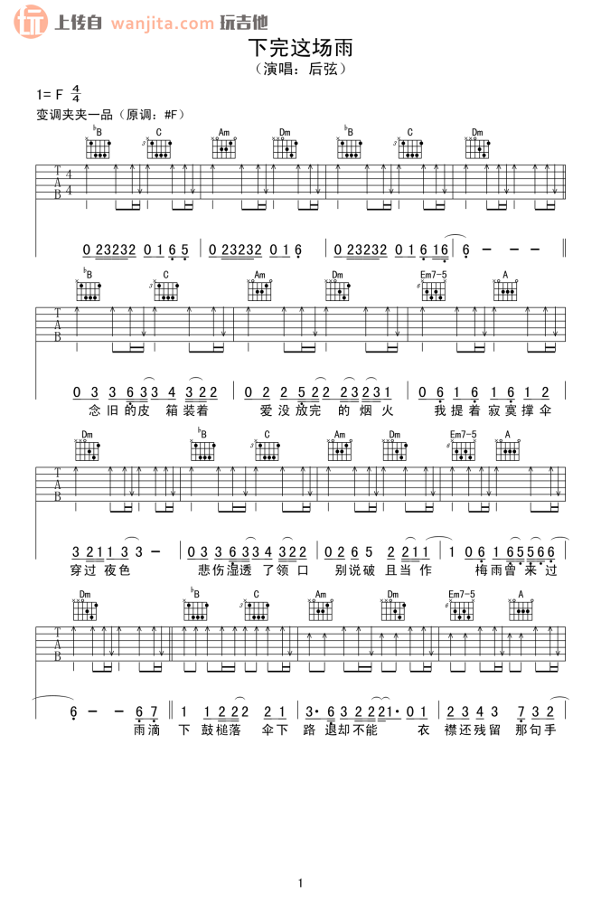 下完这场雨吉他谱 - 后弦 - F调吉他弹唱谱 - 原版