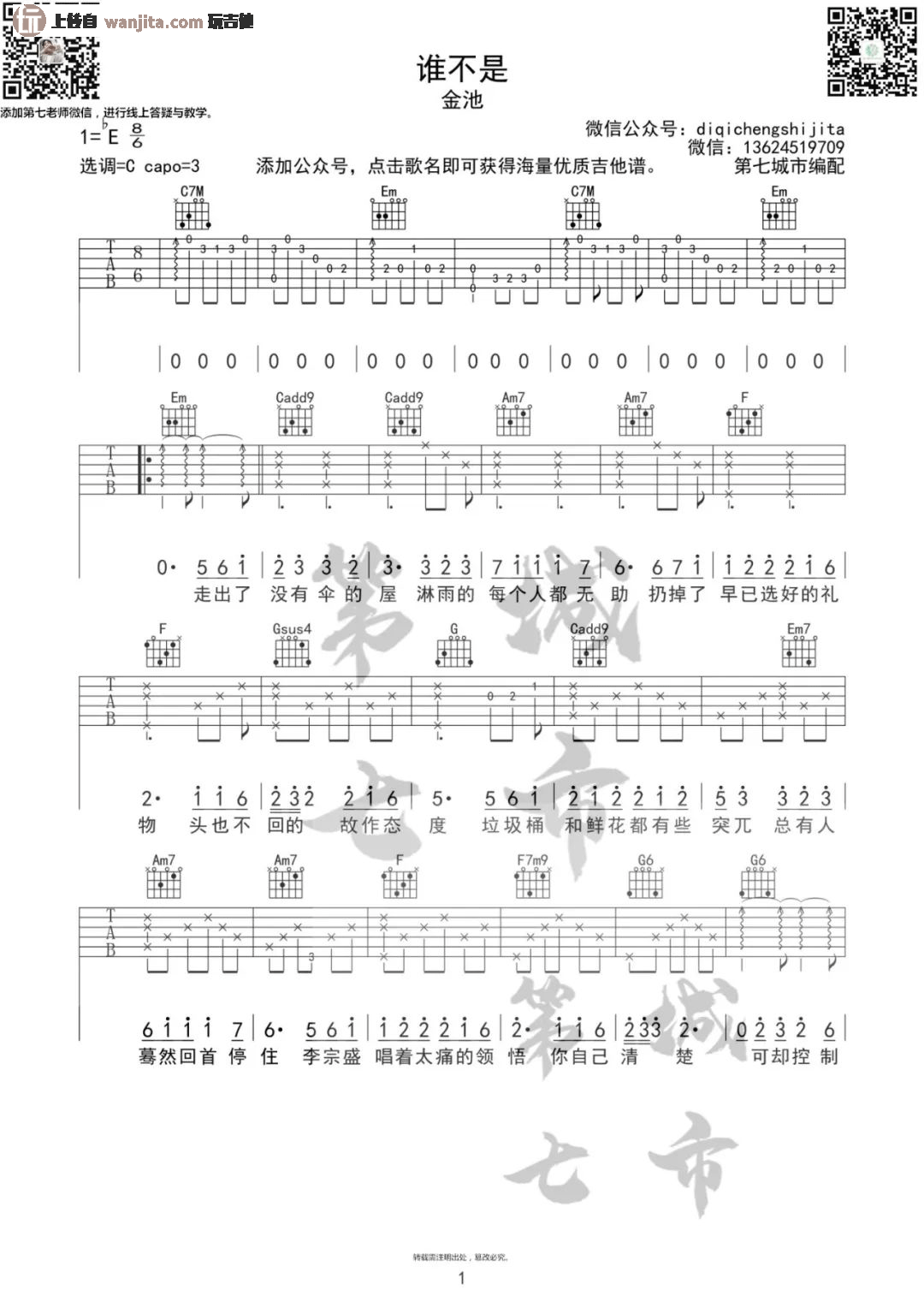 谁不是吉他谱 - 金池 - C调吉他弹唱谱 - 原版