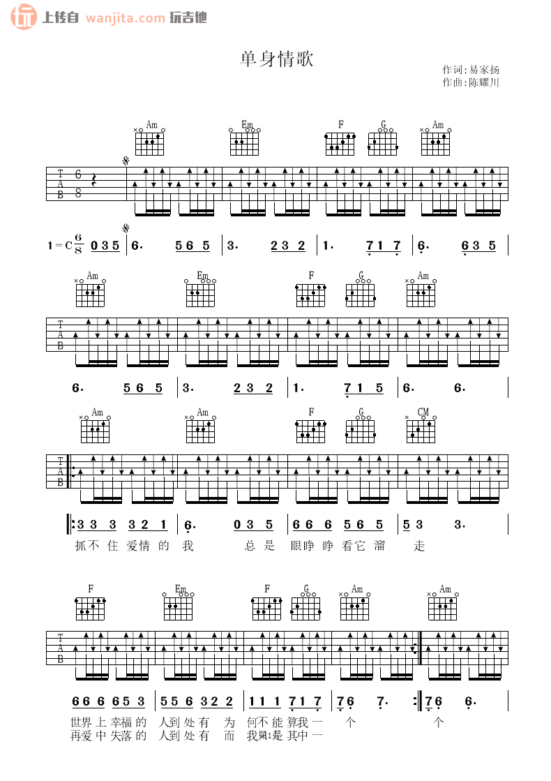 当前位置:琴谱网>吉他弹唱>单身情歌
