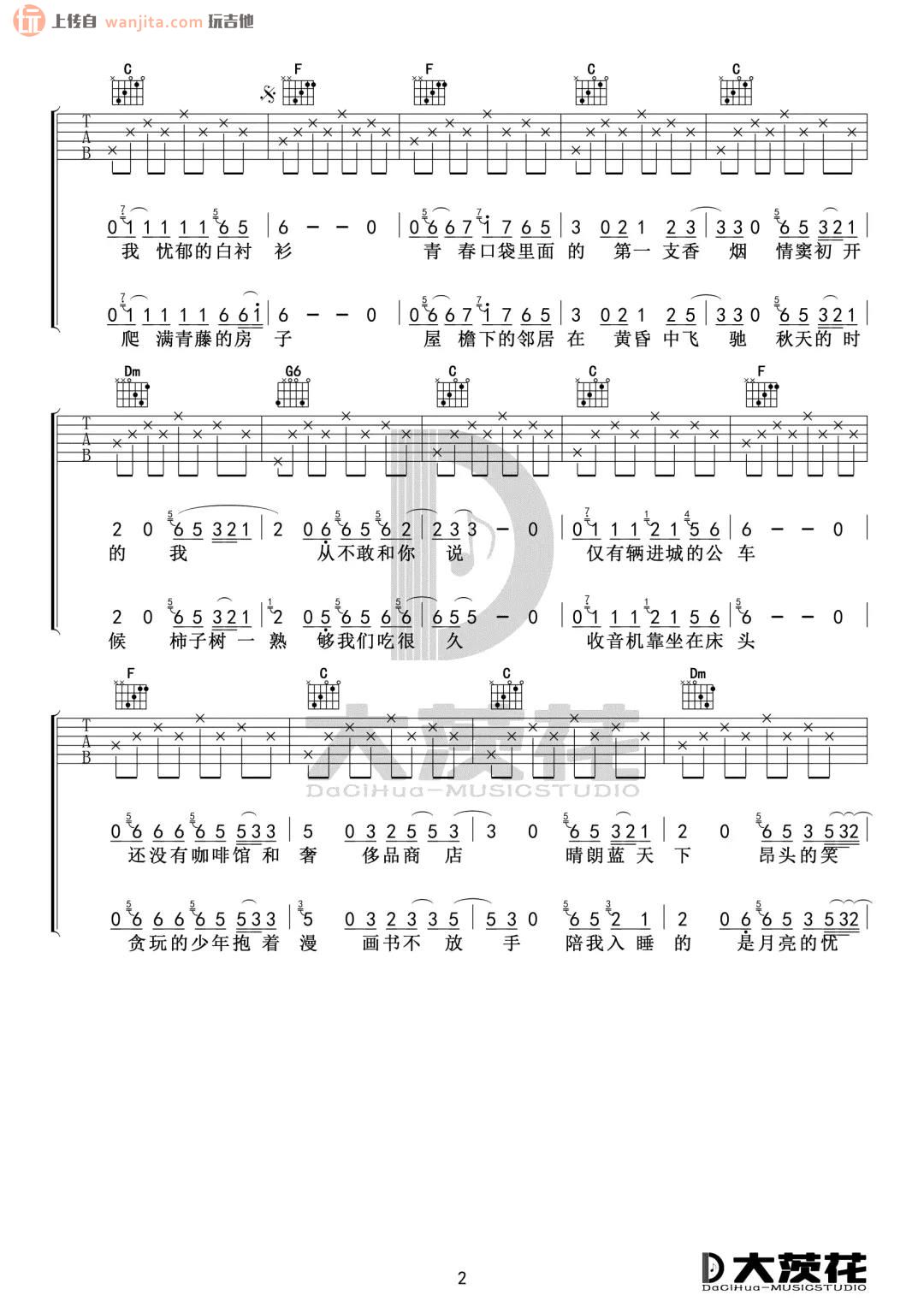 曲谱介绍: 《少年锦时》吉他谱,原调是D调,选用C调指法,变调夹夹2品处,可以弹唱原调,这个谱子比较简单易上手,简单的分解和弦,固定的右手节奏,对新手十分友好,喜欢的朋友可以很好的练习。