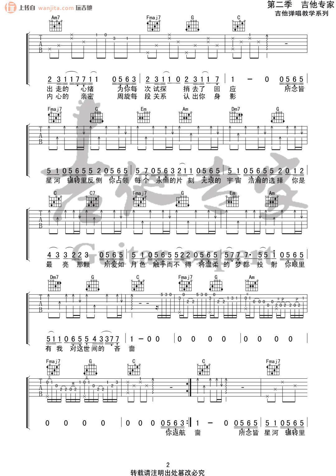当前位置:琴谱网>吉他弹唱>所念皆星河