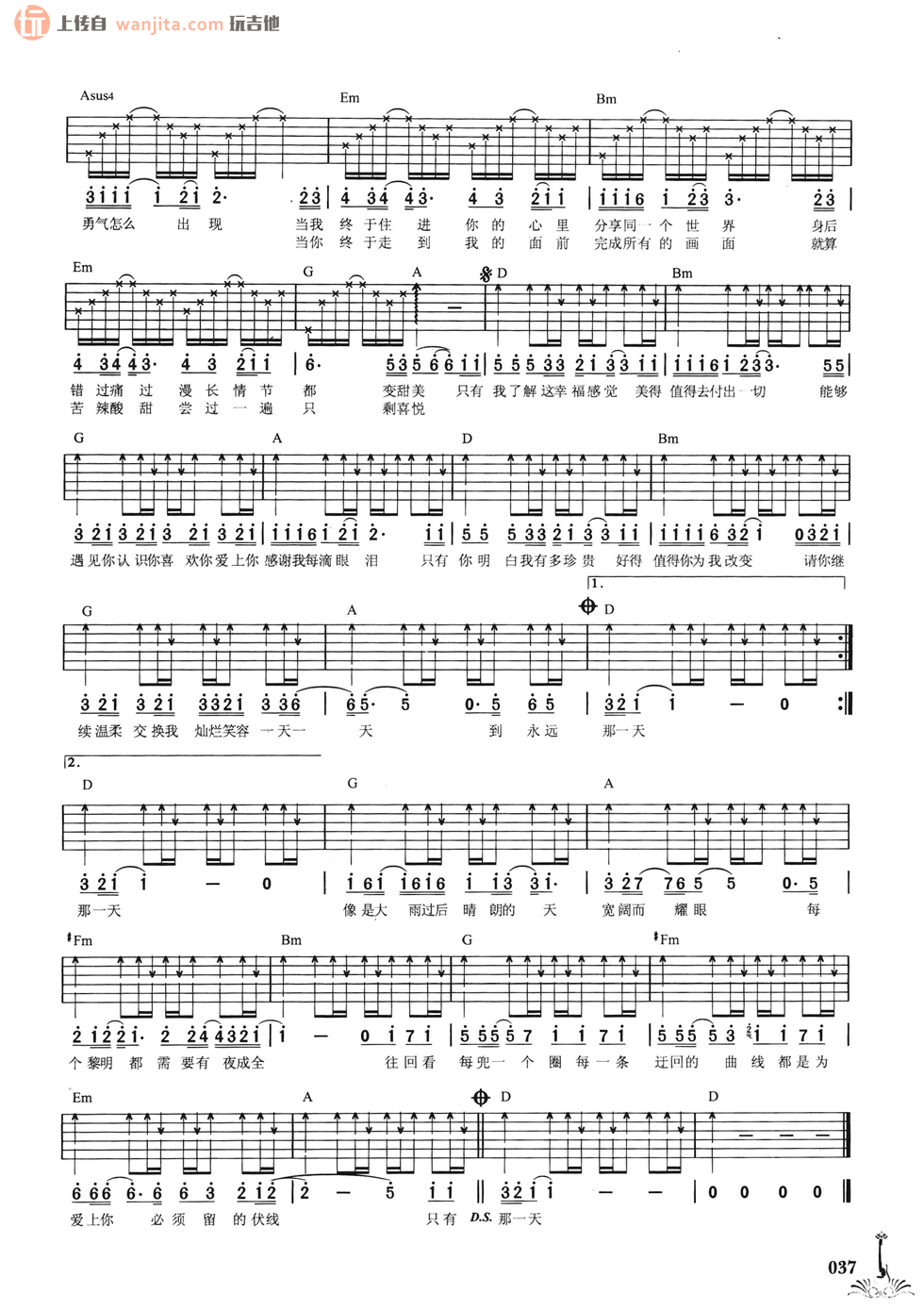 曲谱介绍: 《只为爱上你》吉他谱,选用D调指法编配,4/4拍,分解和弦的方式弹唱,难度适中,需要掌握好右手节奏的节拍,注意好停顿。