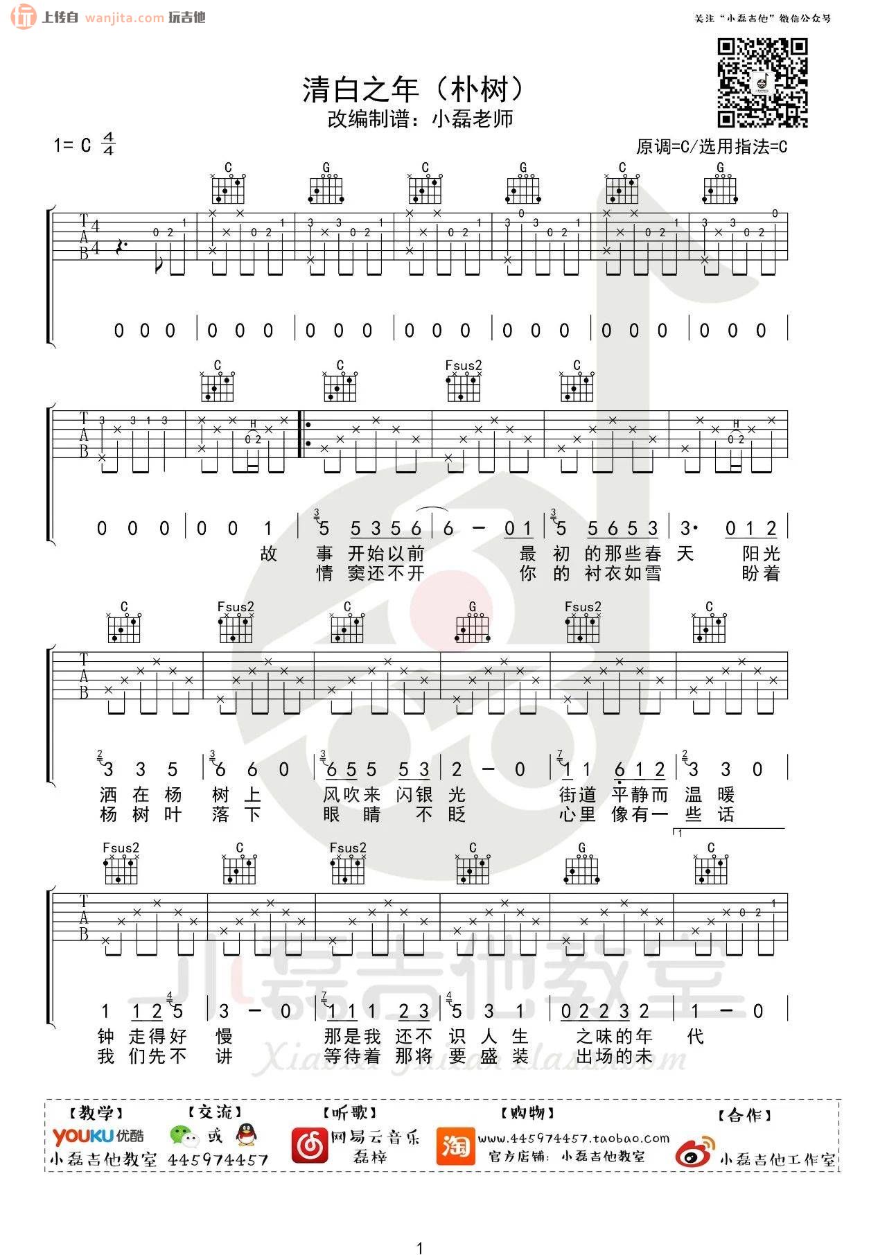 清白之年吉他谱 - 朴树 - C调吉他弹唱谱 - 原版