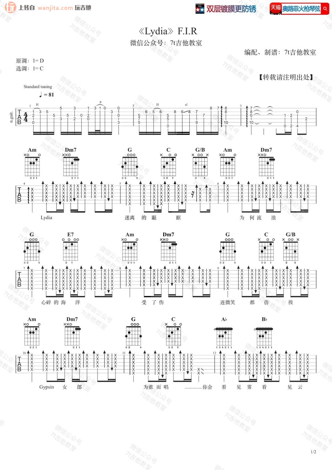 曲谱介绍: 《lydia》吉他谱,这首歌的原调是D调,我用的是C调指法来编配,如果想弹原调,夹第2品就可以哦。整体难度不大,主要以扫弦节奏为主,喜欢的朋友可以自己先进行节奏练习,再整体弹唱。 《lydia》吉他弹唱视频教程示范