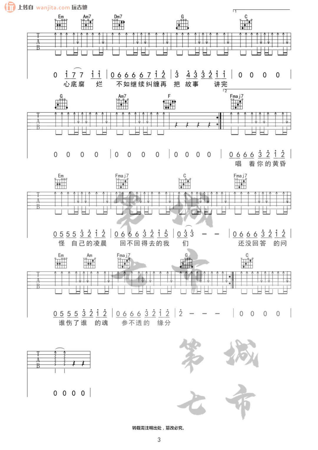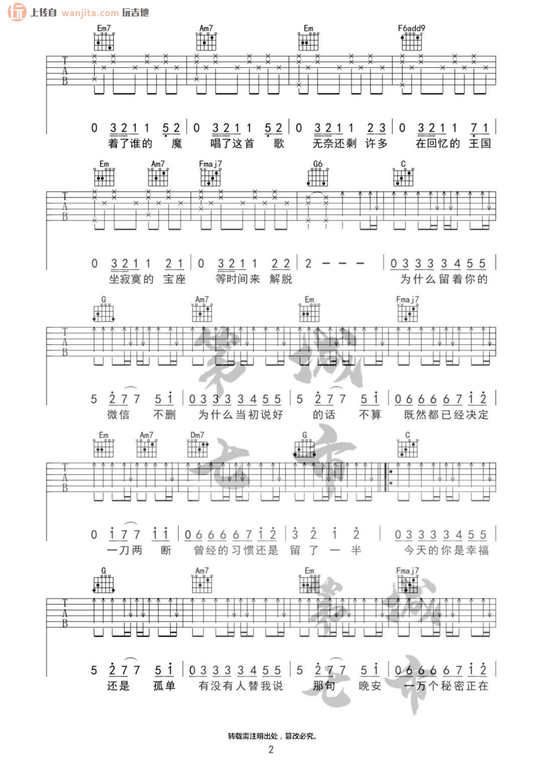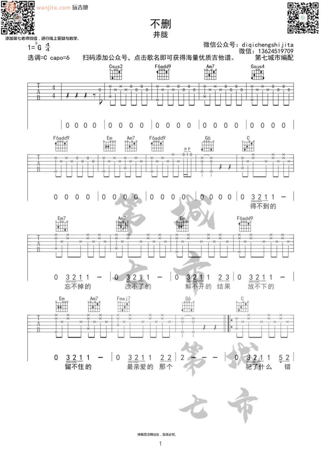 曲谱介绍: 不删吉他谱_C调原版六线谱_《不删》吉他弹唱谱,这首谱子原调是bG选用的C调指法,变调夹可以夹6品处弹唱原调,整体弹唱不算难,上手弹唱应该十分容易。