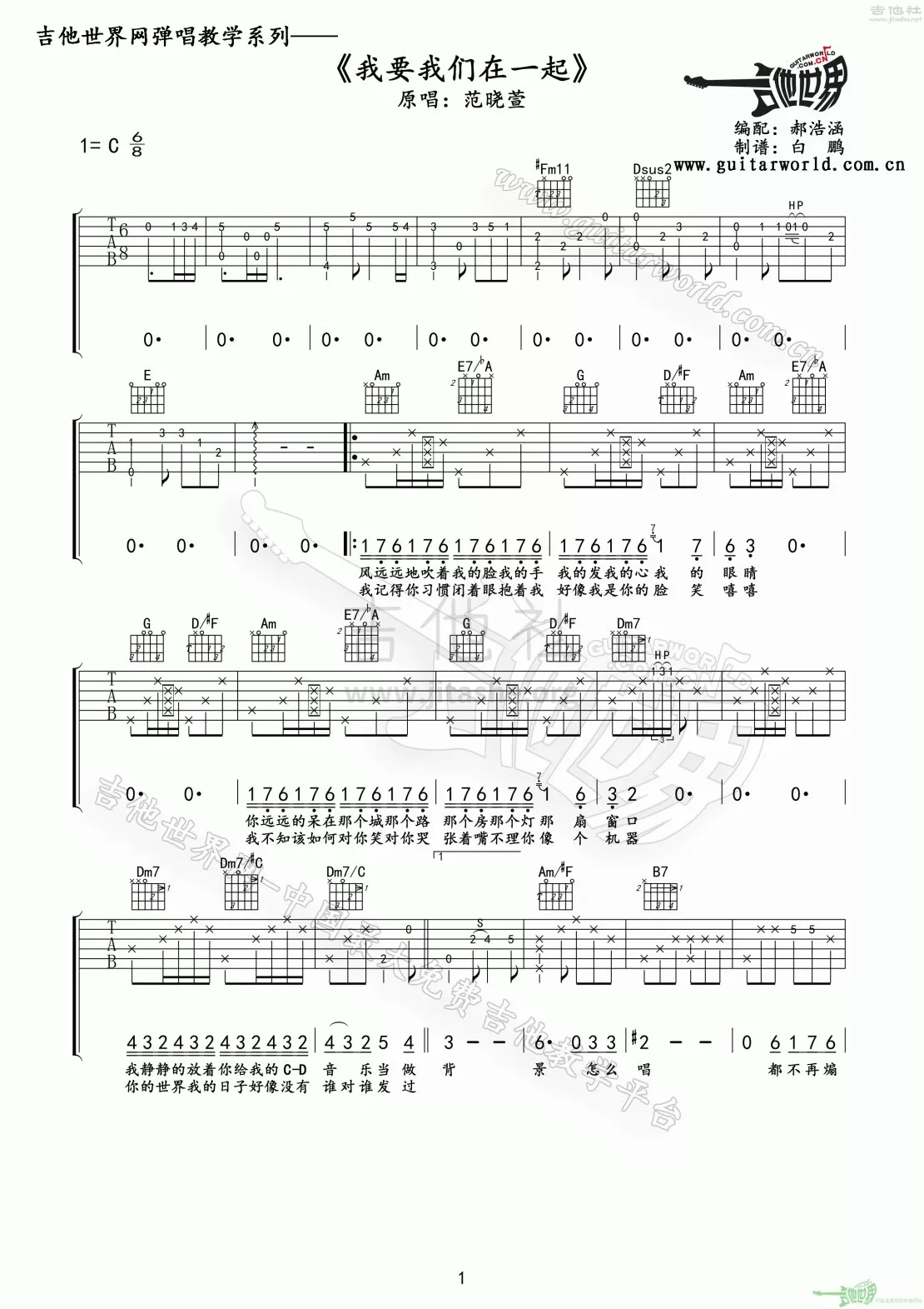 我要我们在一起吉他谱 - 范晓萱 - C调吉他弹唱谱 - 原版