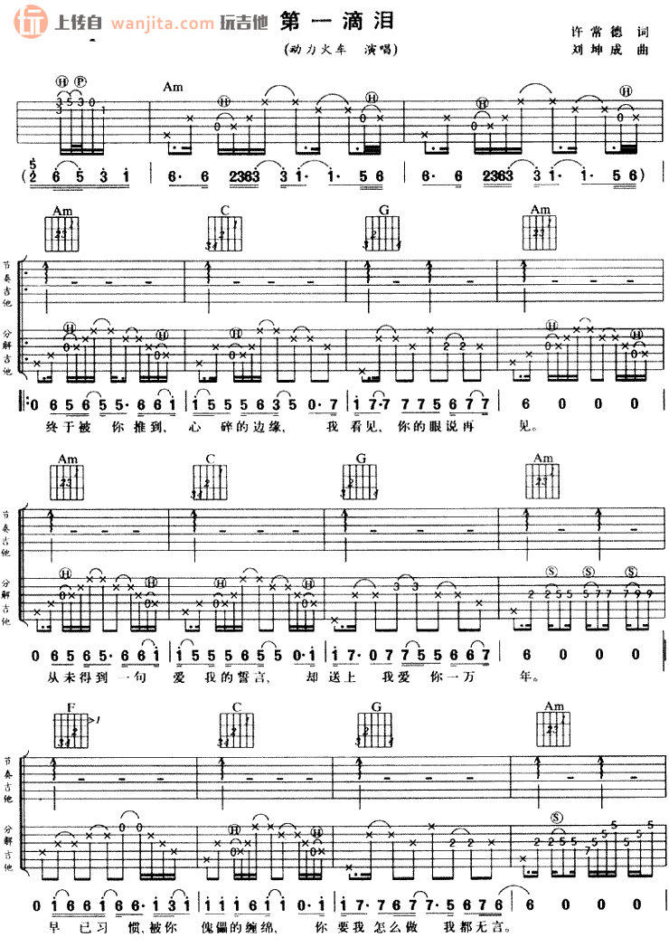 第一滴泪吉他谱 - 动力火车 - C调吉他弹唱谱 - 原版