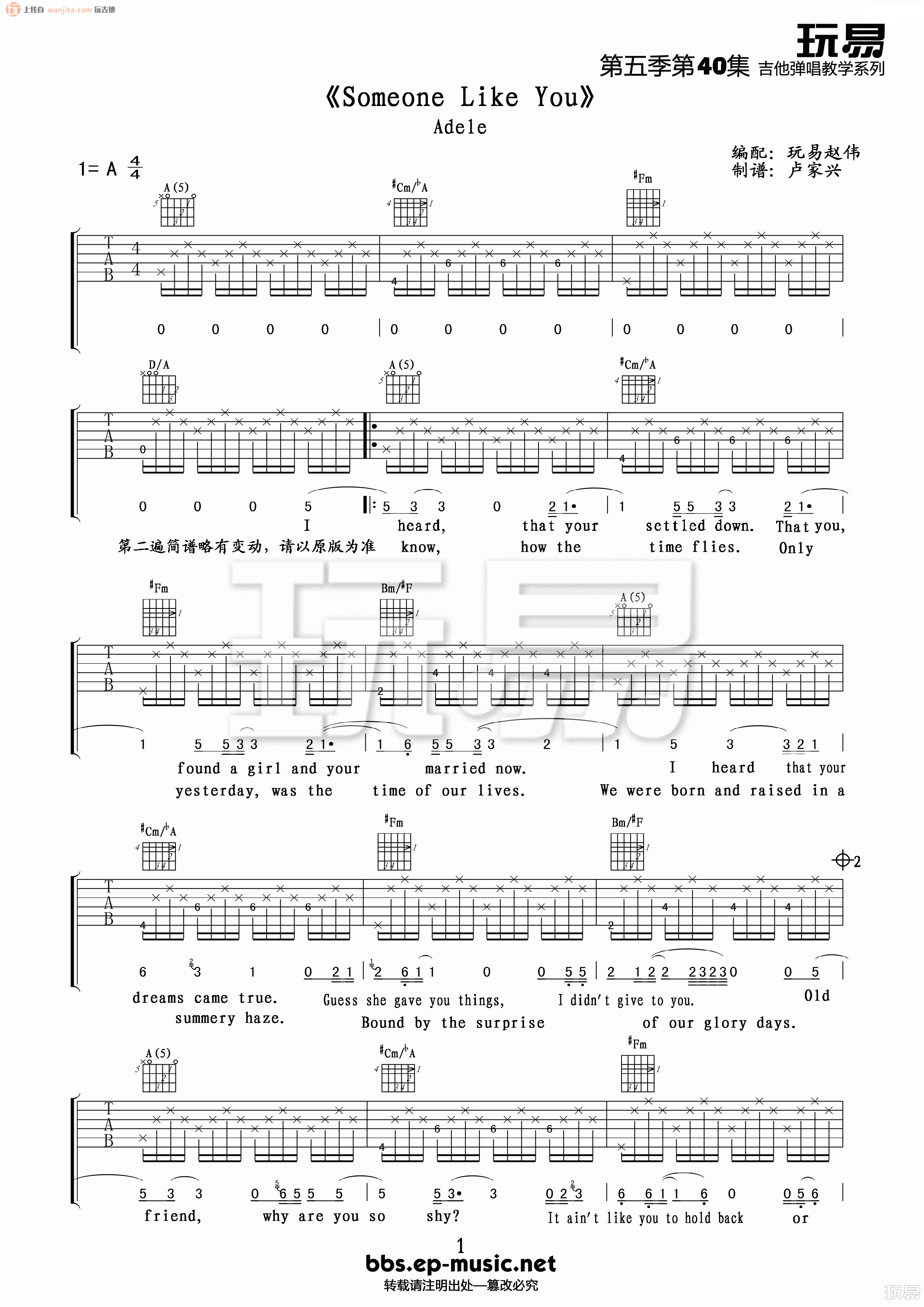Someone Like You吉他谱 - Someone - A调吉他弹唱谱 - 原版