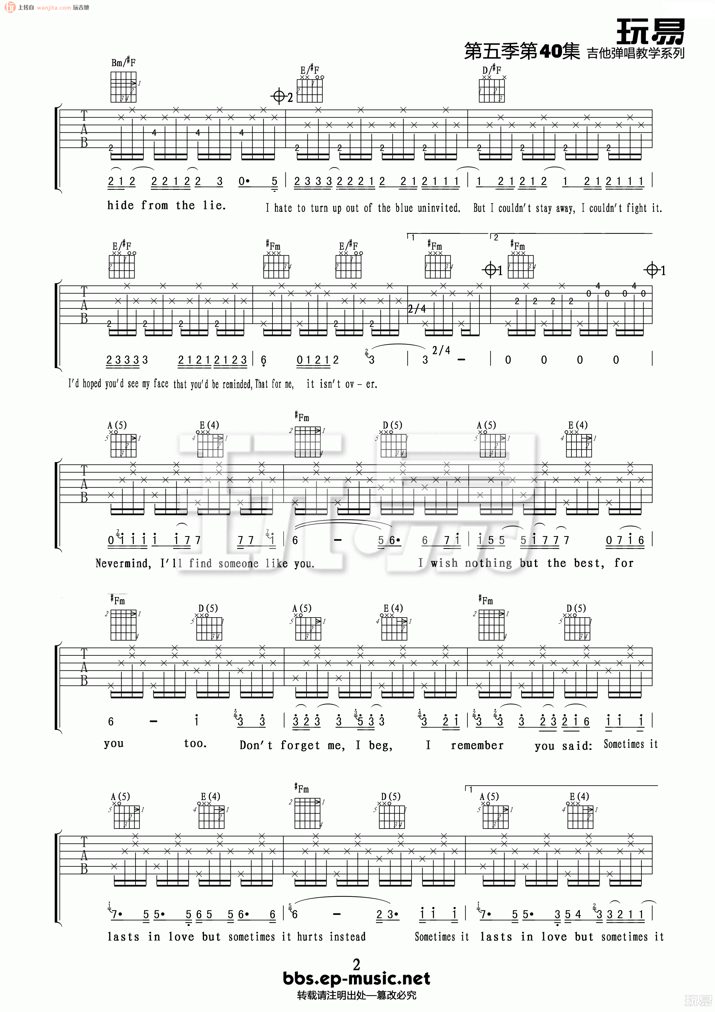 当前位置:琴谱网>吉他弹唱>Someone Like You