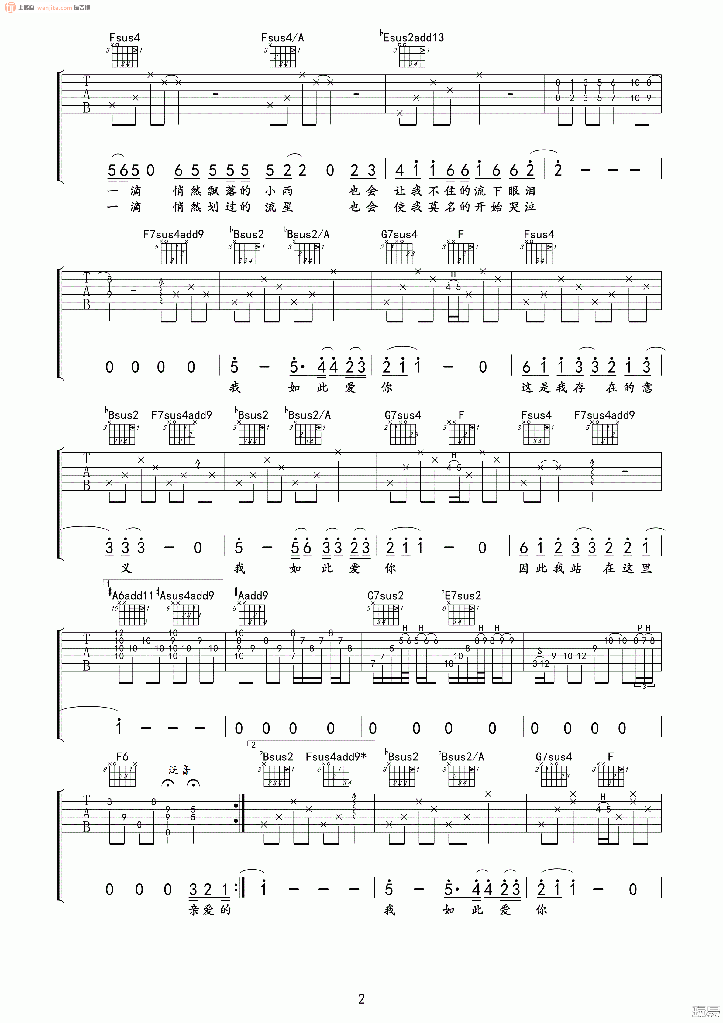 我如此爱你吉他谱 - 汪峰 - B调吉他弹唱谱 - 原版