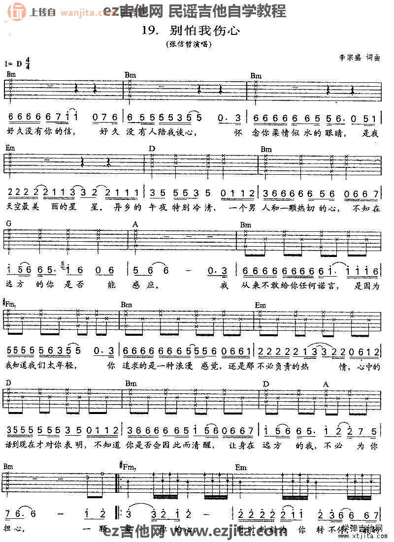 别怕我伤心吉他谱 - 张信哲 - D调吉他弹唱谱