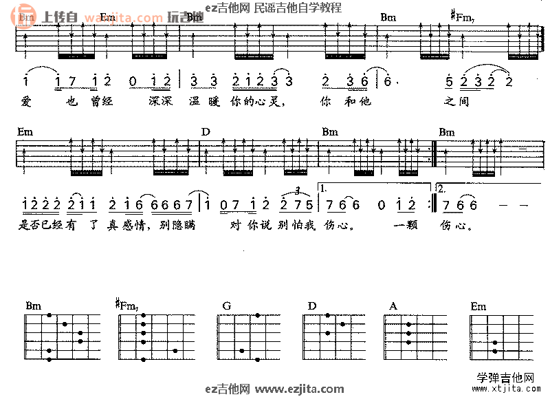 曲谱介绍: 《别怕我伤心》吉他谱,选用D调指法编配,歌曲弹唱比较简单,简单标准的和弦,节奏弹唱难度也不大,喜欢的朋友可以好好练习一下。