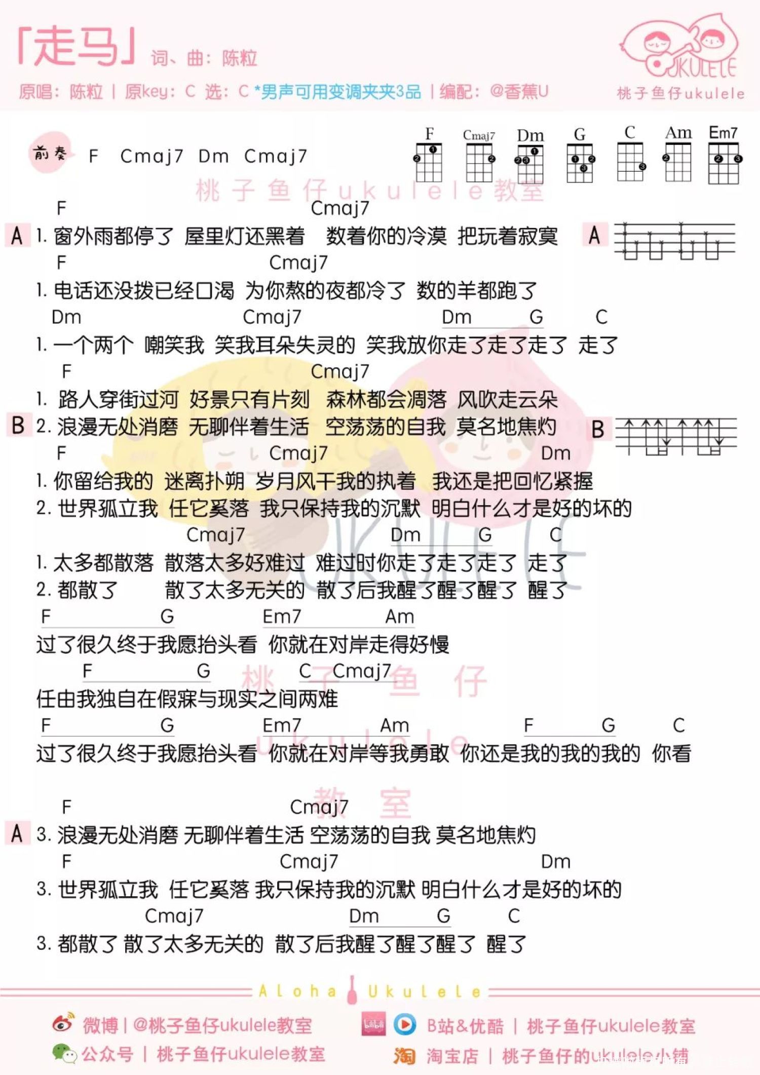 走马尤克里里谱 - 陈粒