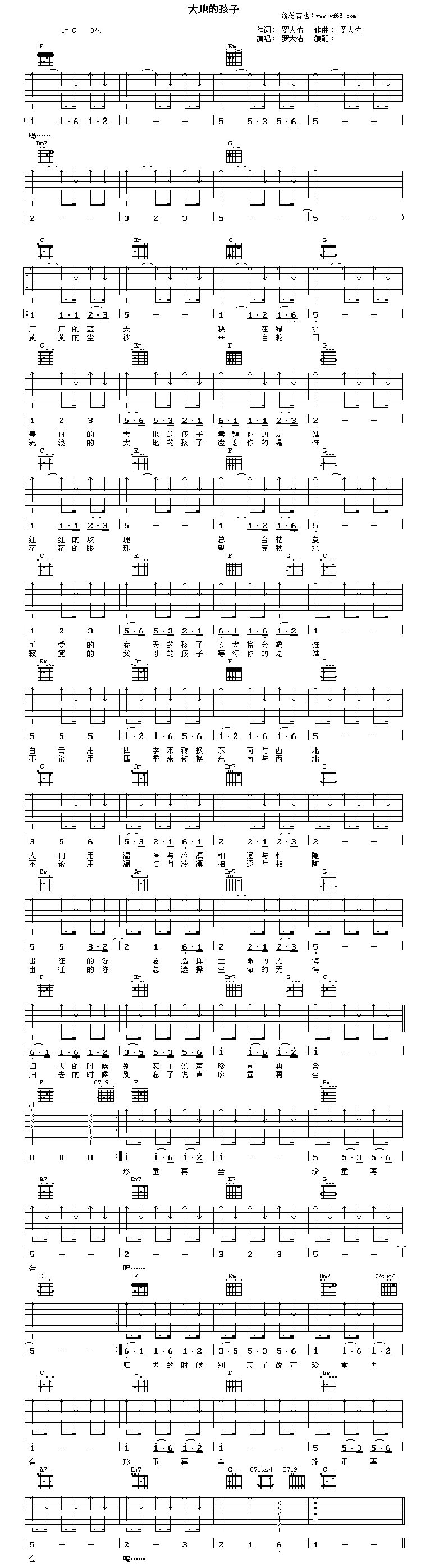 大地的孩子吉他谱 - 罗大佑 - C调吉他弹唱谱