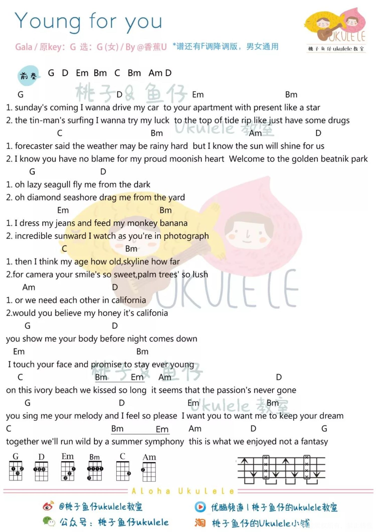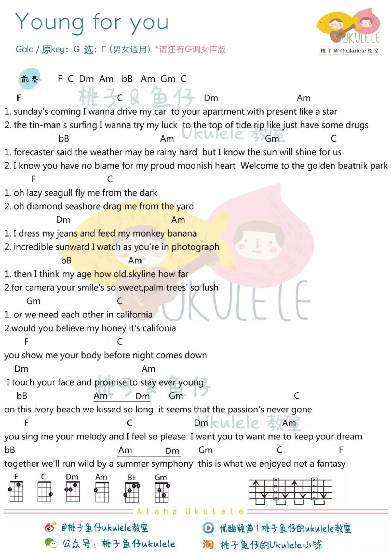 《Young For You》是北京的英伦风格摇滚乐队GALA演唱的一首歌曲。2004年3月发行英文专辑《Young For You》。这首歌唱起来略有点点轻佻,阳光,跳跃,字里行间都充满着青春的味道,令人雀跃。让人百听不厌。