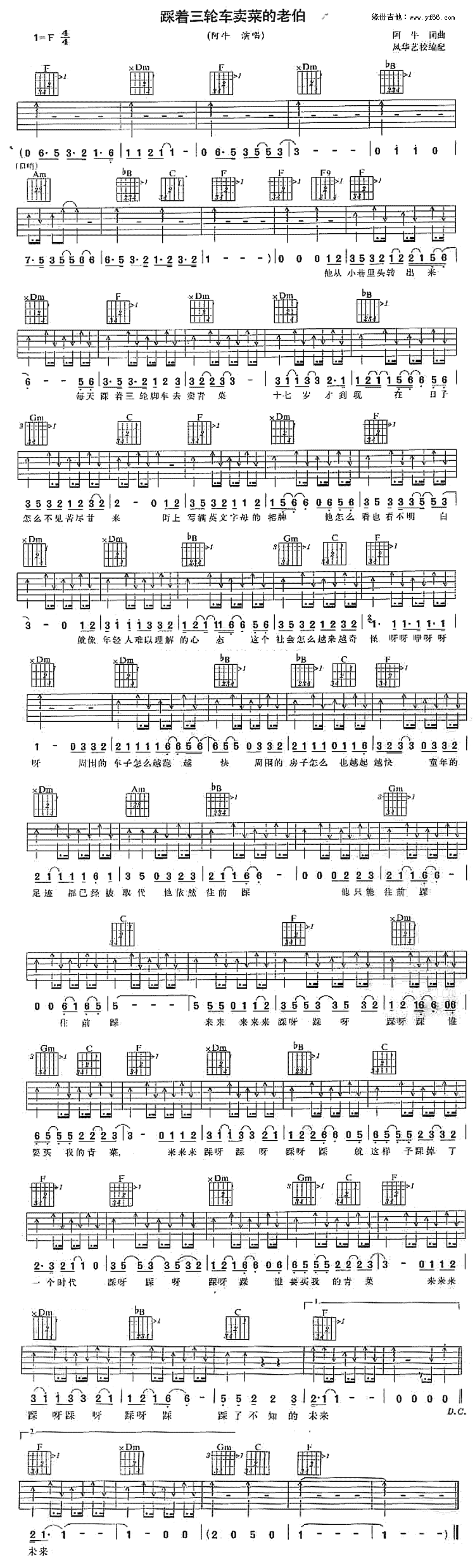 踩着三轮车卖菜的老伯吉他谱 - 阿牛 - 吉他弹唱谱