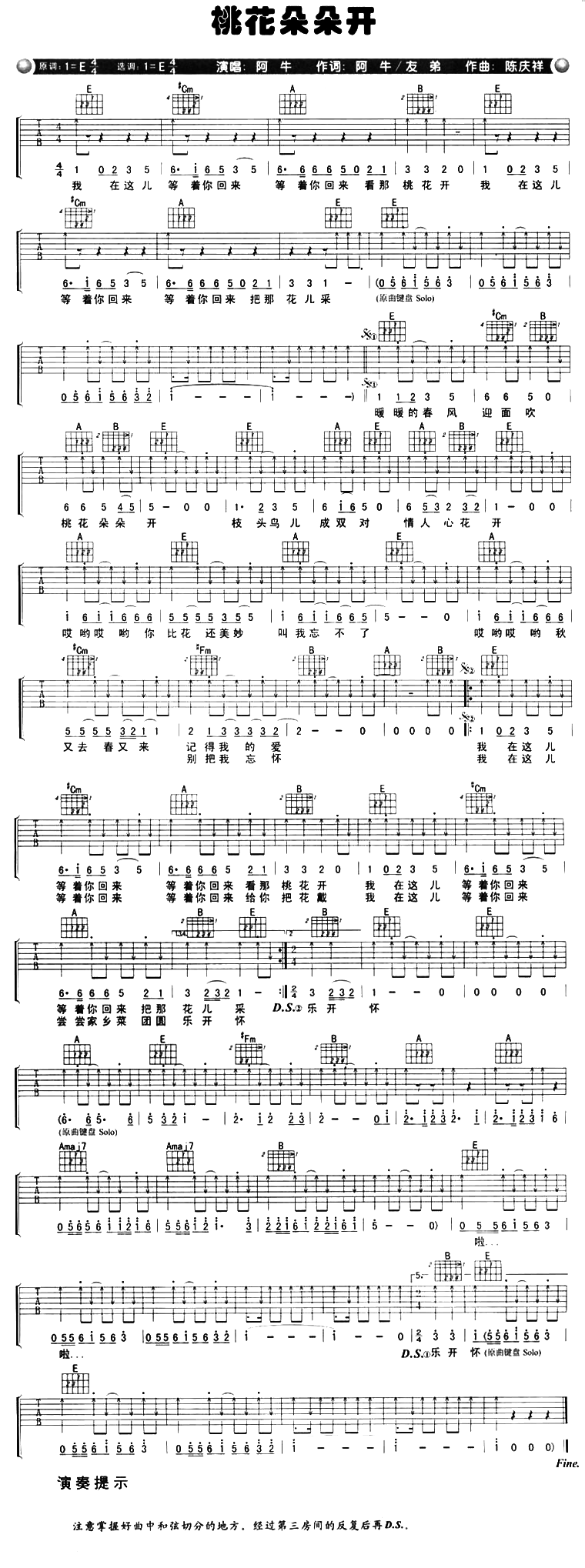 桃花朵朵开吉他谱 - 阿牛 - E调吉他弹唱谱