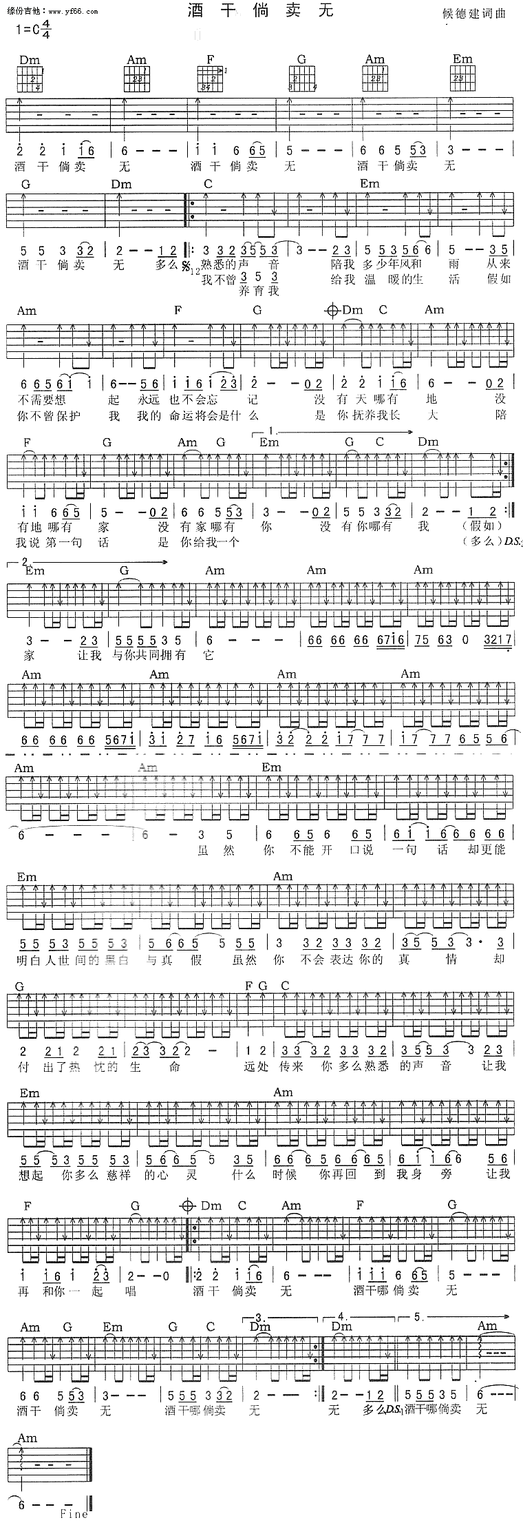 当前位置:琴谱网>吉他弹唱>酒干倘卖无