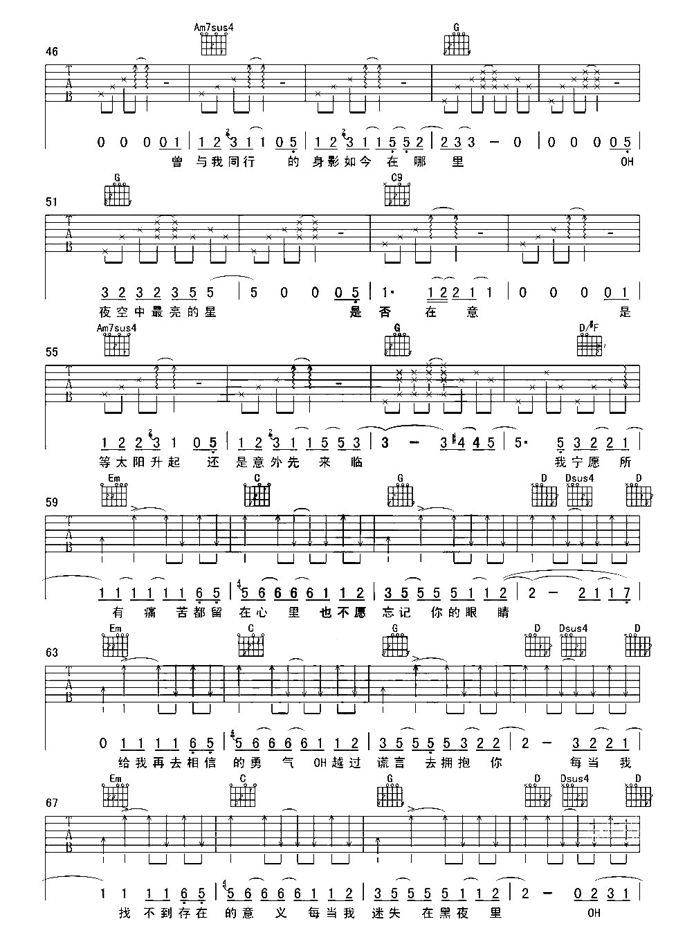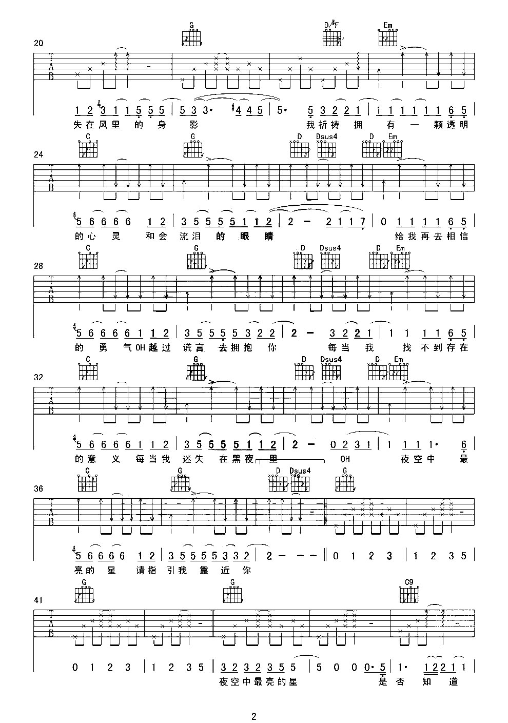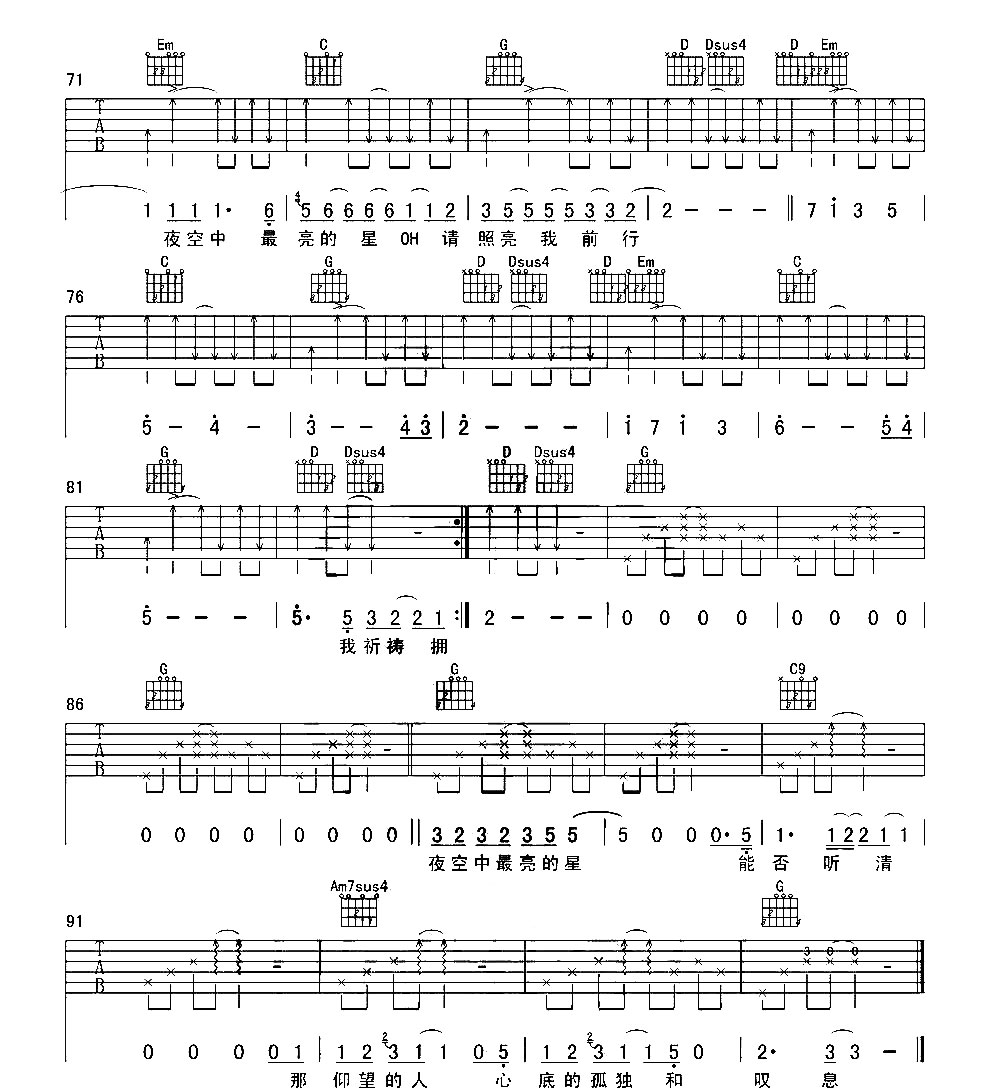 当前位置:琴谱网>吉他弹唱>夜空中最亮的星