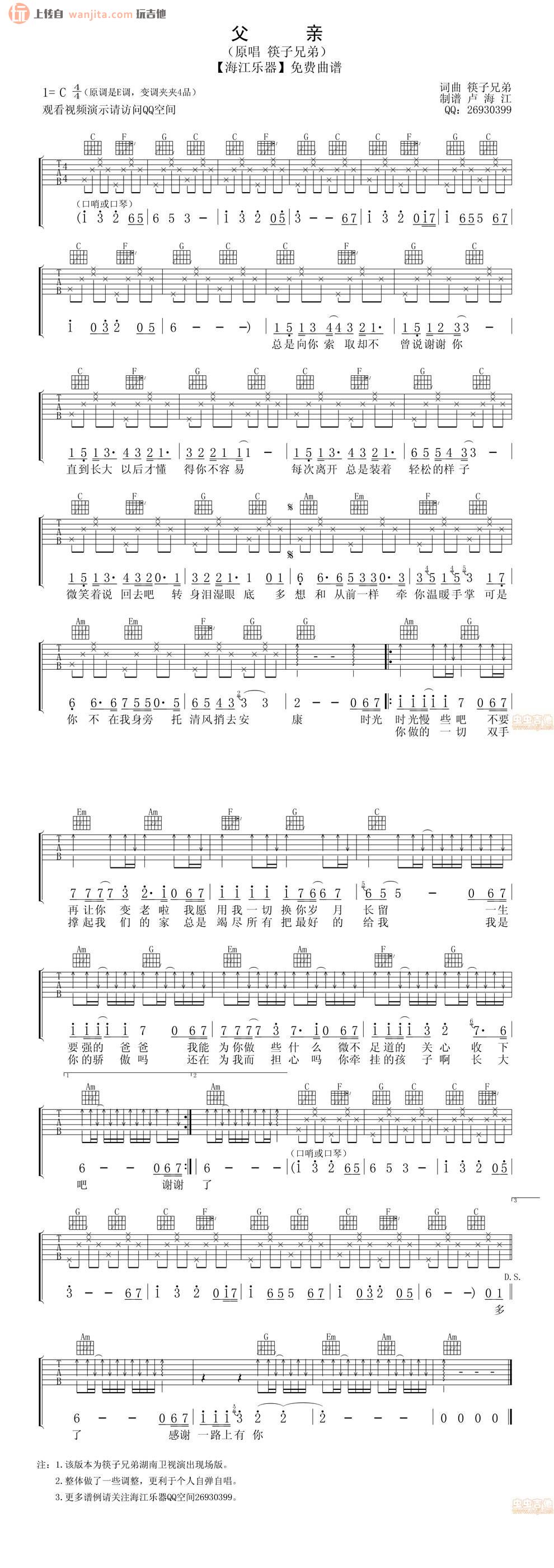 父亲吉他谱 - 筷子兄弟 - C调吉他弹唱谱